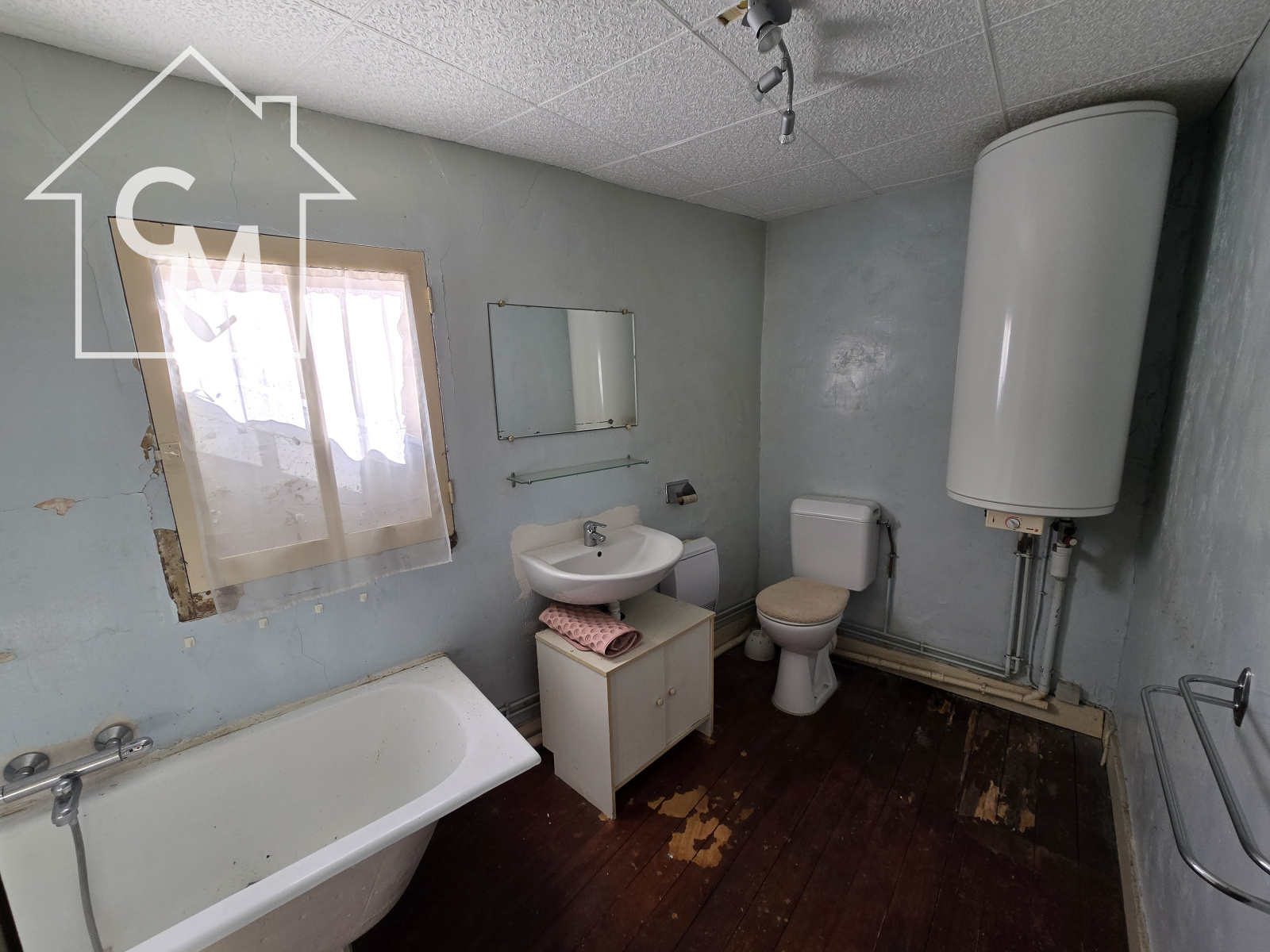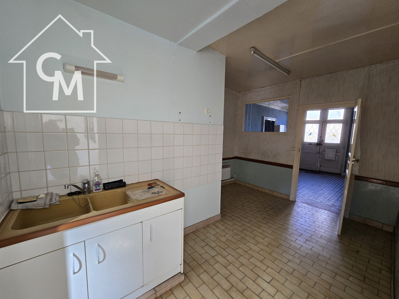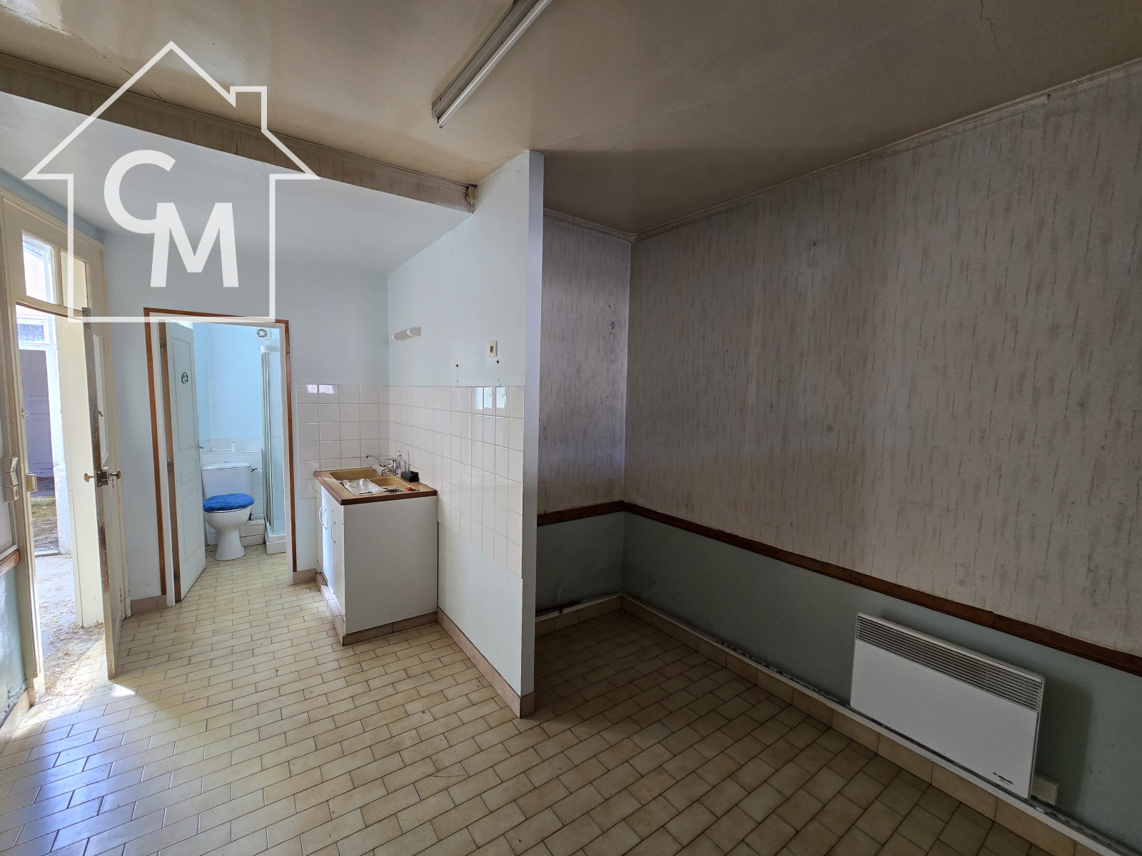 Maison d'habitation donnant sur rue composée au rez de chaussée de trois pièces, cuisine, wc et douche.