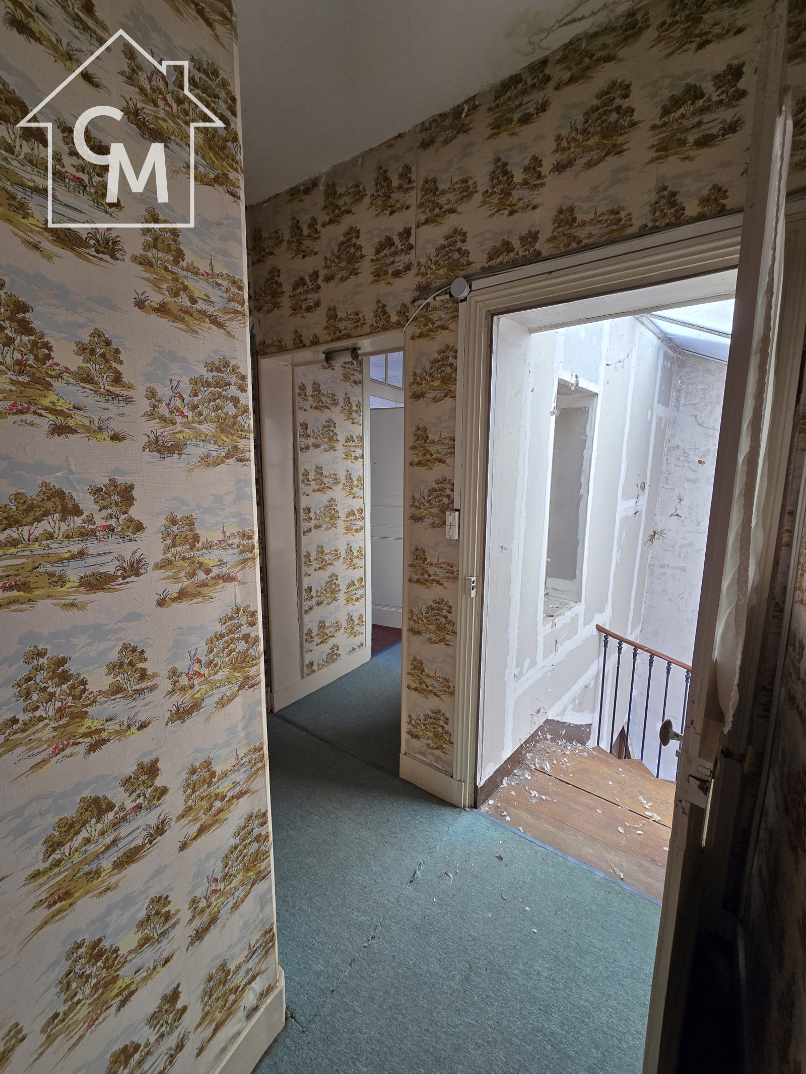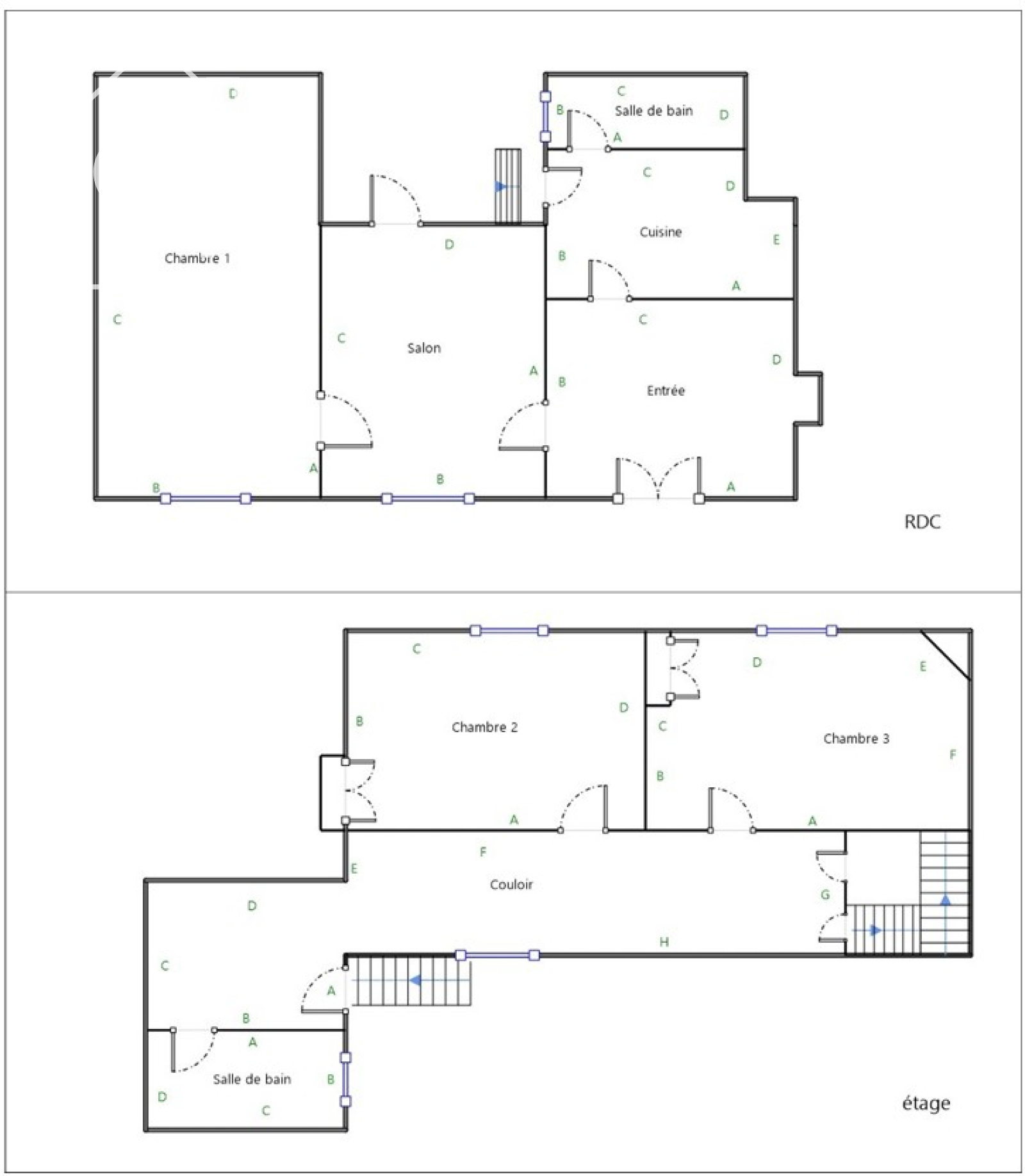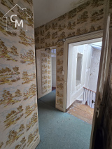 A l'étage un couloir dessert deux chambres, une salle de bain avec wc.