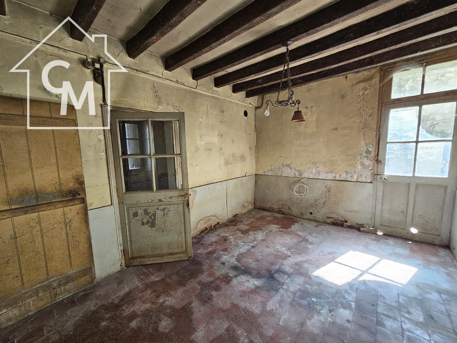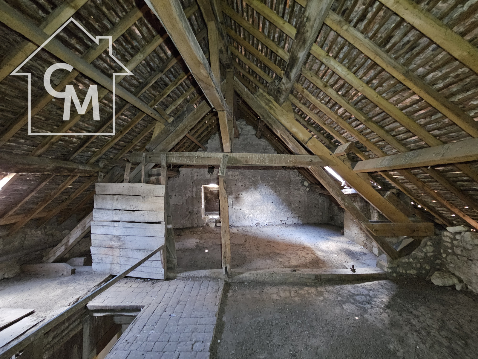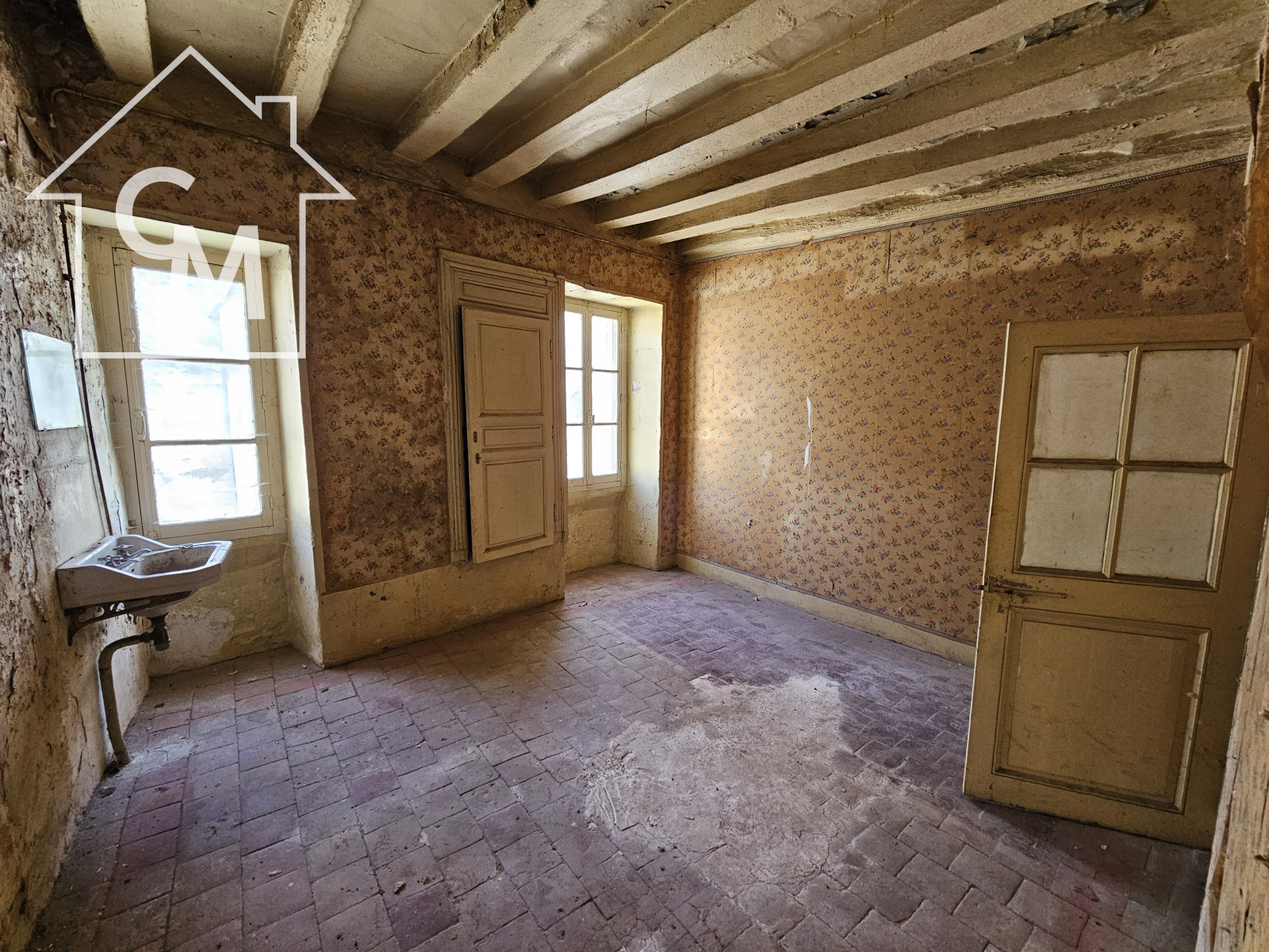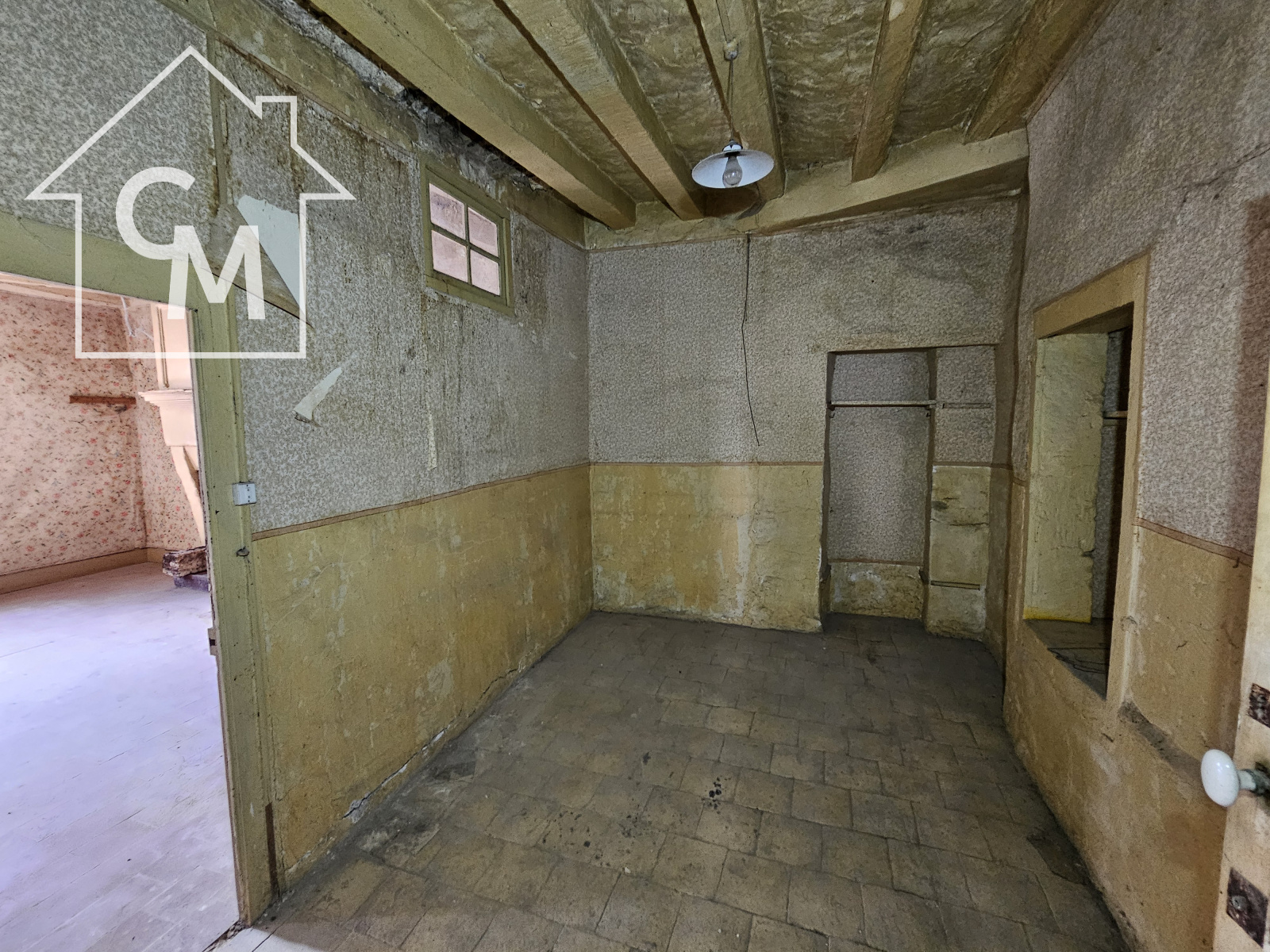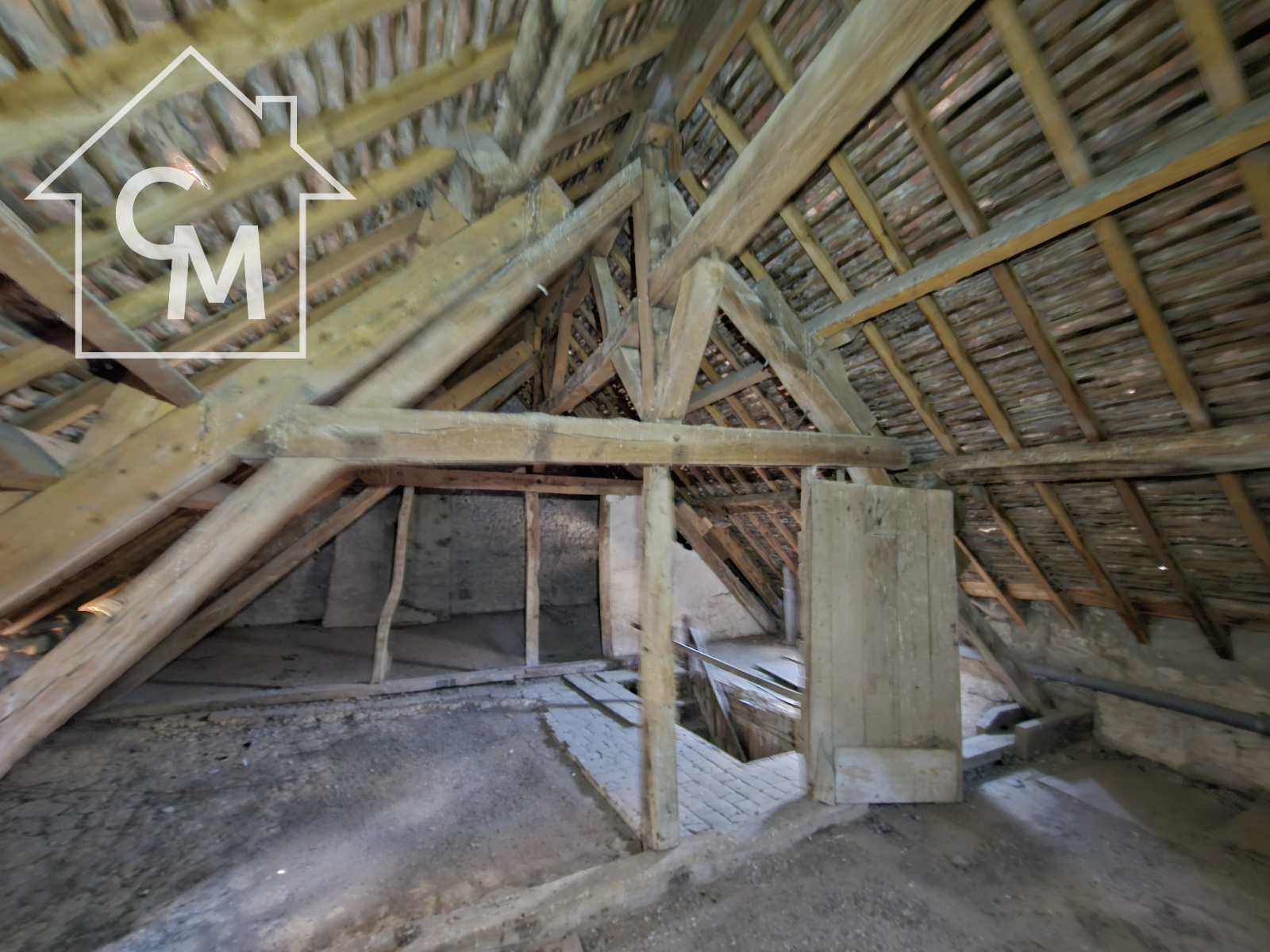 Elle est composée de 3 pièces au rez de chaussée, wc sous escalier, 4 pièces à l'étage, un grenier sur le tout.
