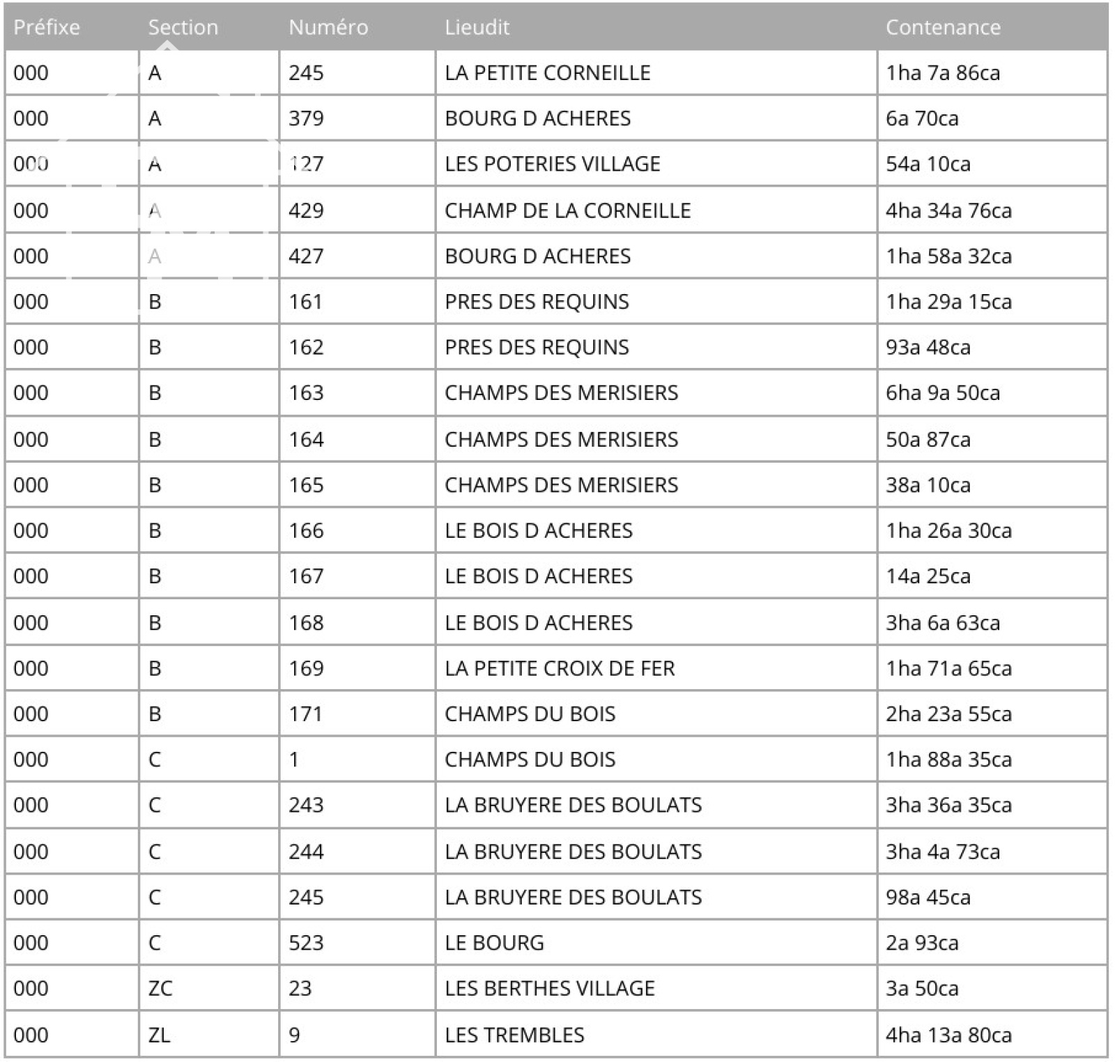 Sur la commune d'ACHERES ensemble de diverses parcelles agricoles en nature de terre, bois, et 2 terrains constructibles (670 m² et 293 m²)