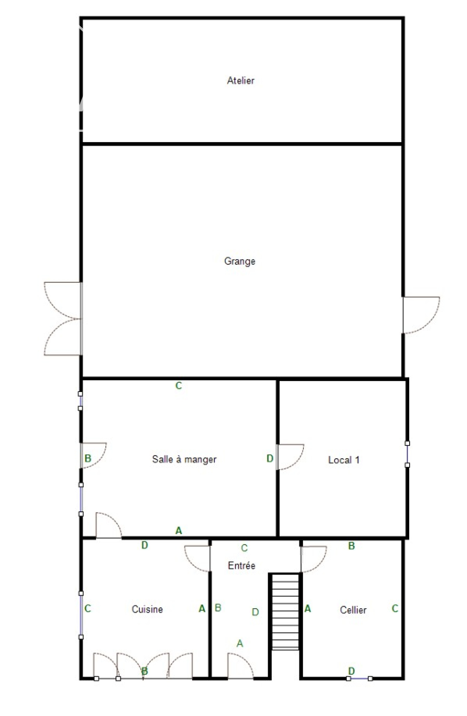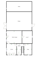 Elle est composée au rez de chaussée d'une entrée, cuisine, salon, cave, débarras.