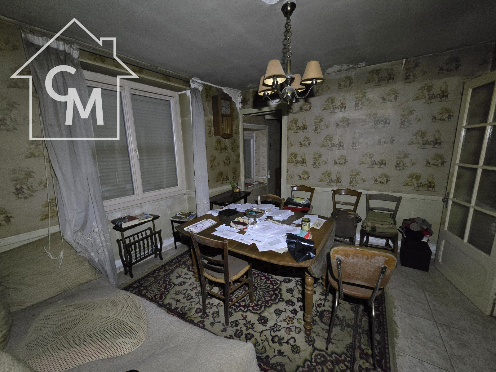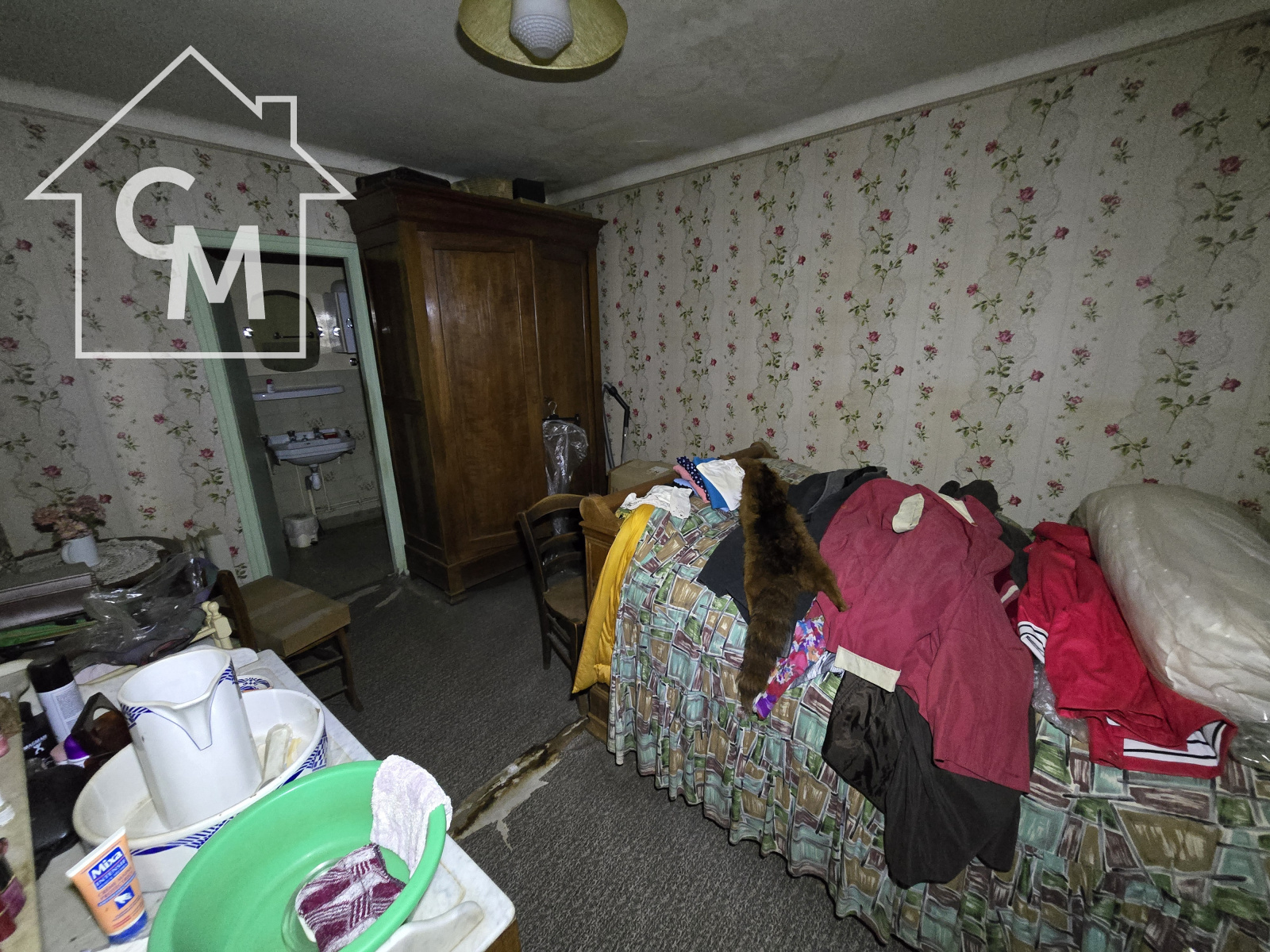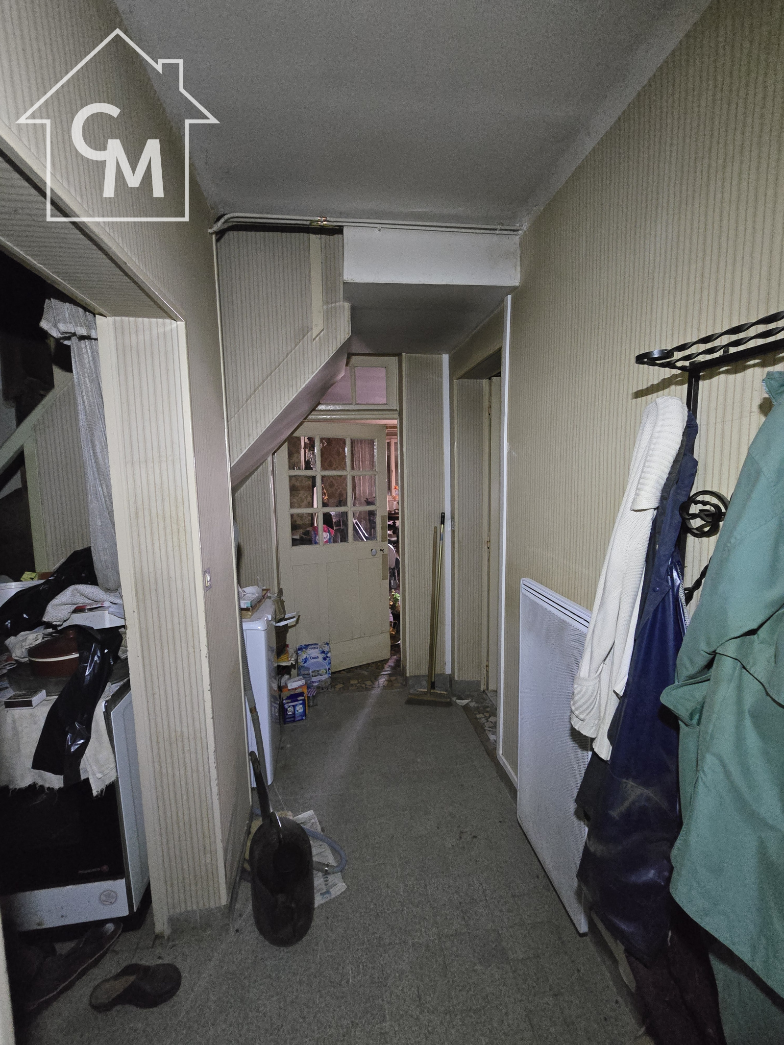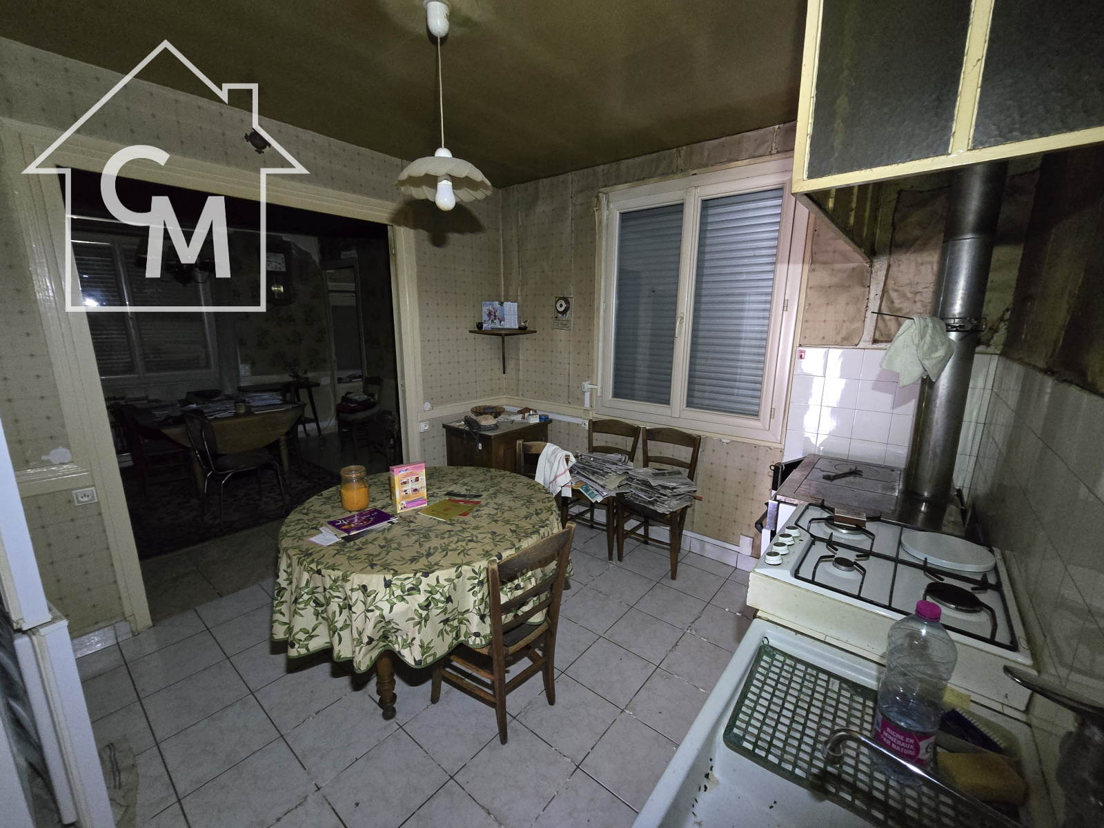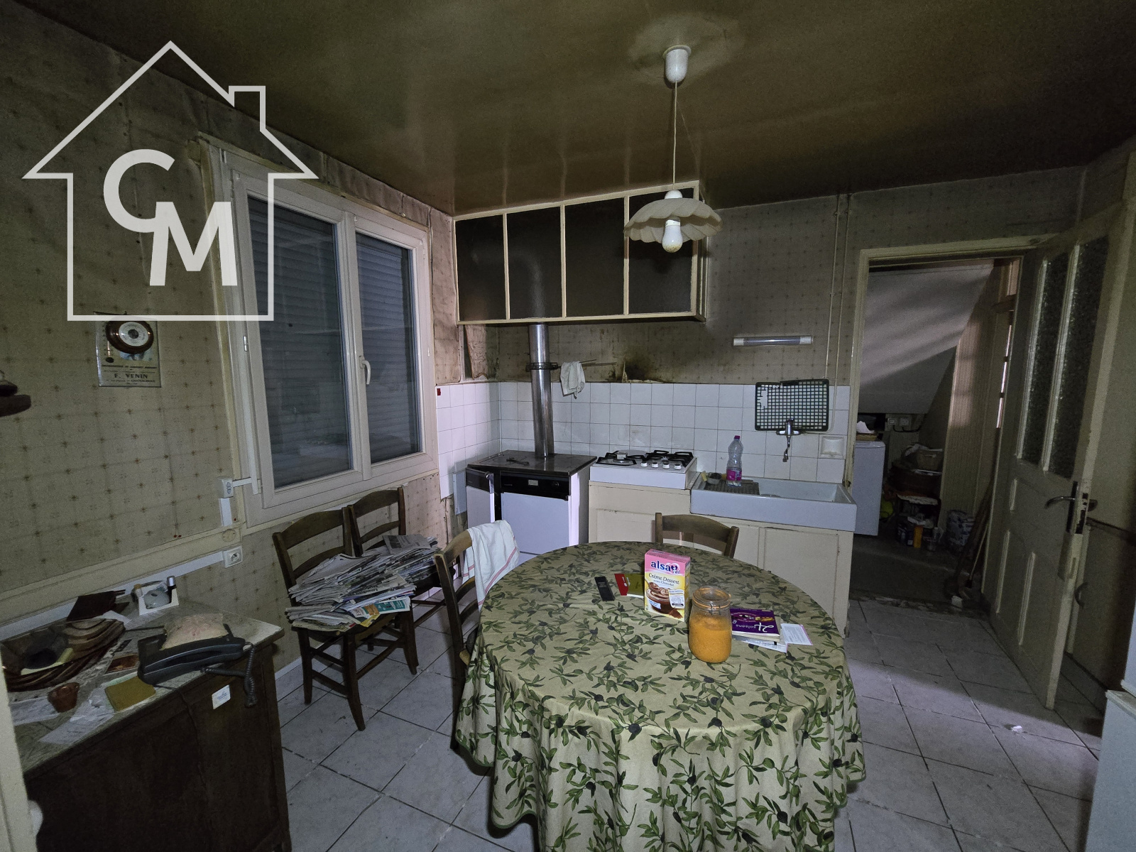 Maison d'habitation composée d'une salle à manger, une cuisine séparée, 4 pièces en enfilade, une chambre par laquelle on accède à la salle d'eau et au wc.