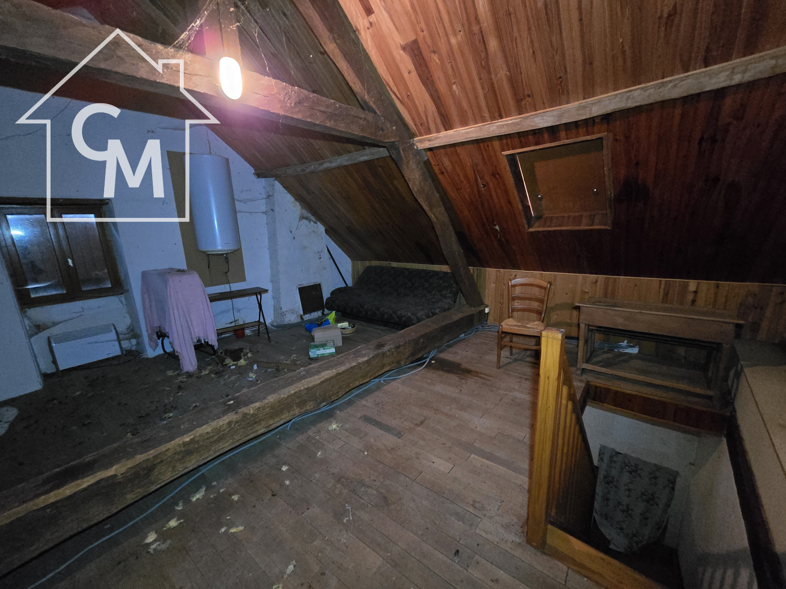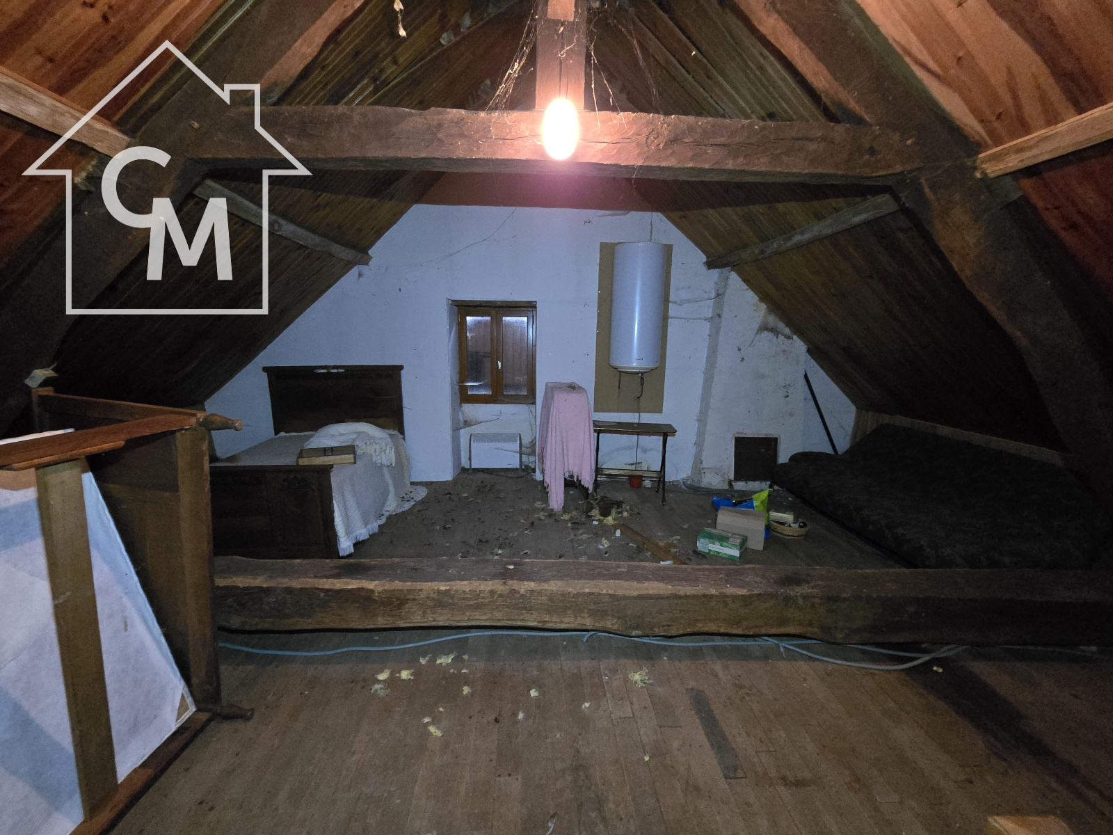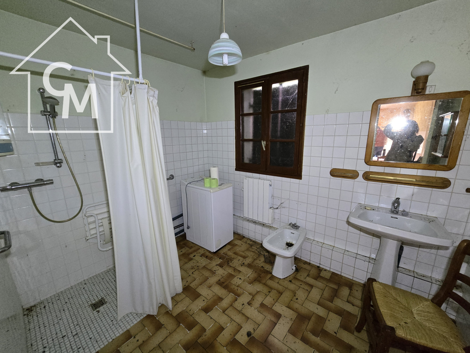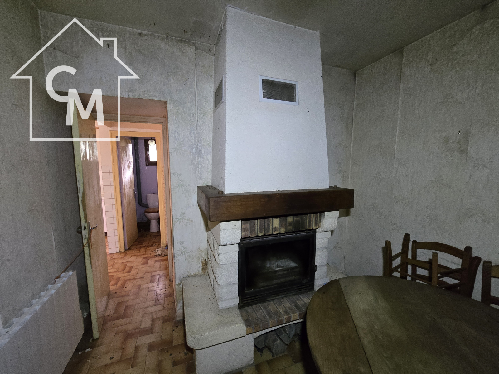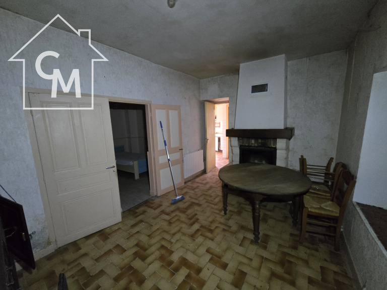 Elle est composée d'une entrée sur cuisine, salle d'eau, wc séparé, salle à manger avec cheminée avec porte donnant sur l'extérieur, une chambre, un bureau.