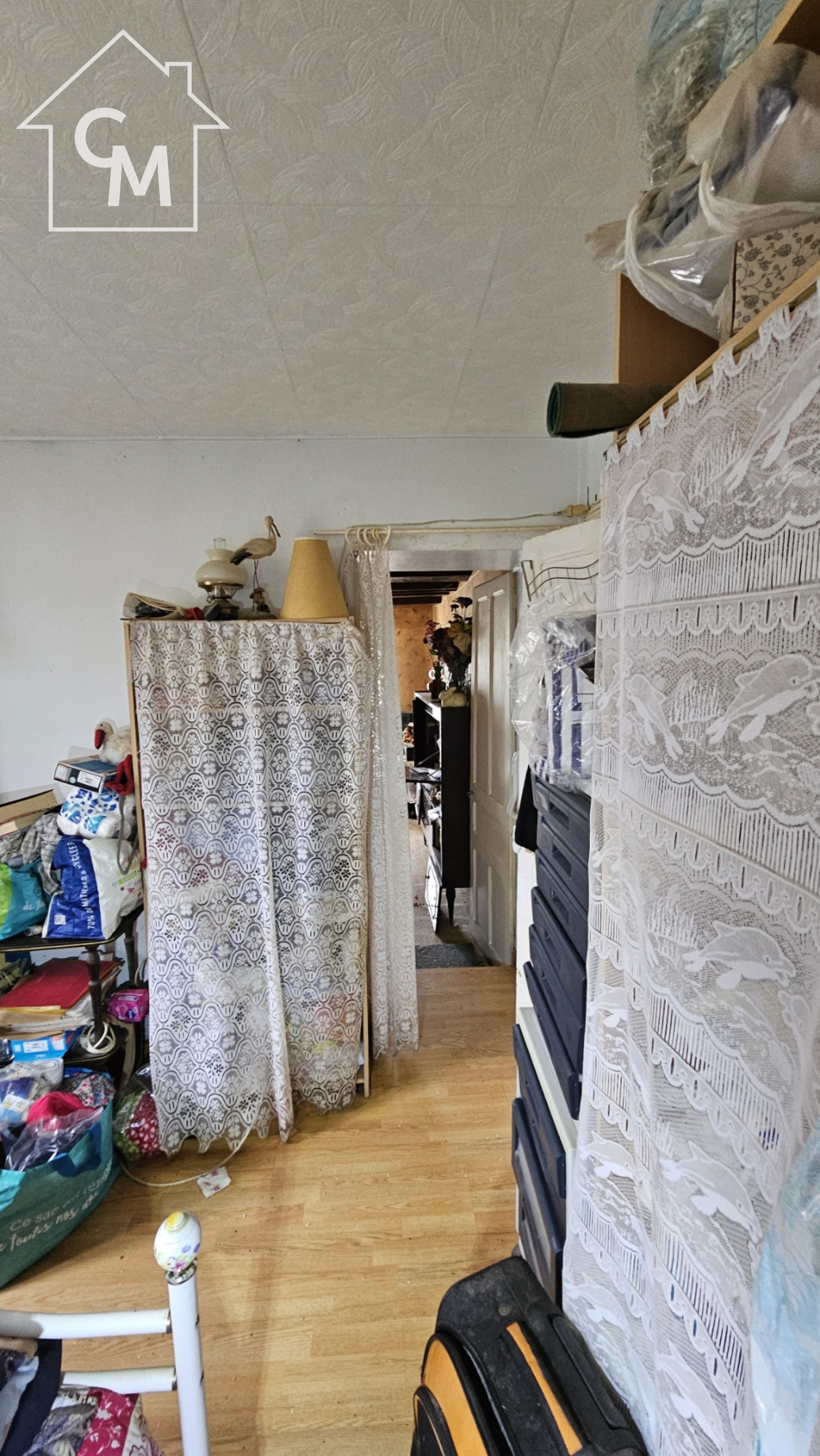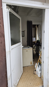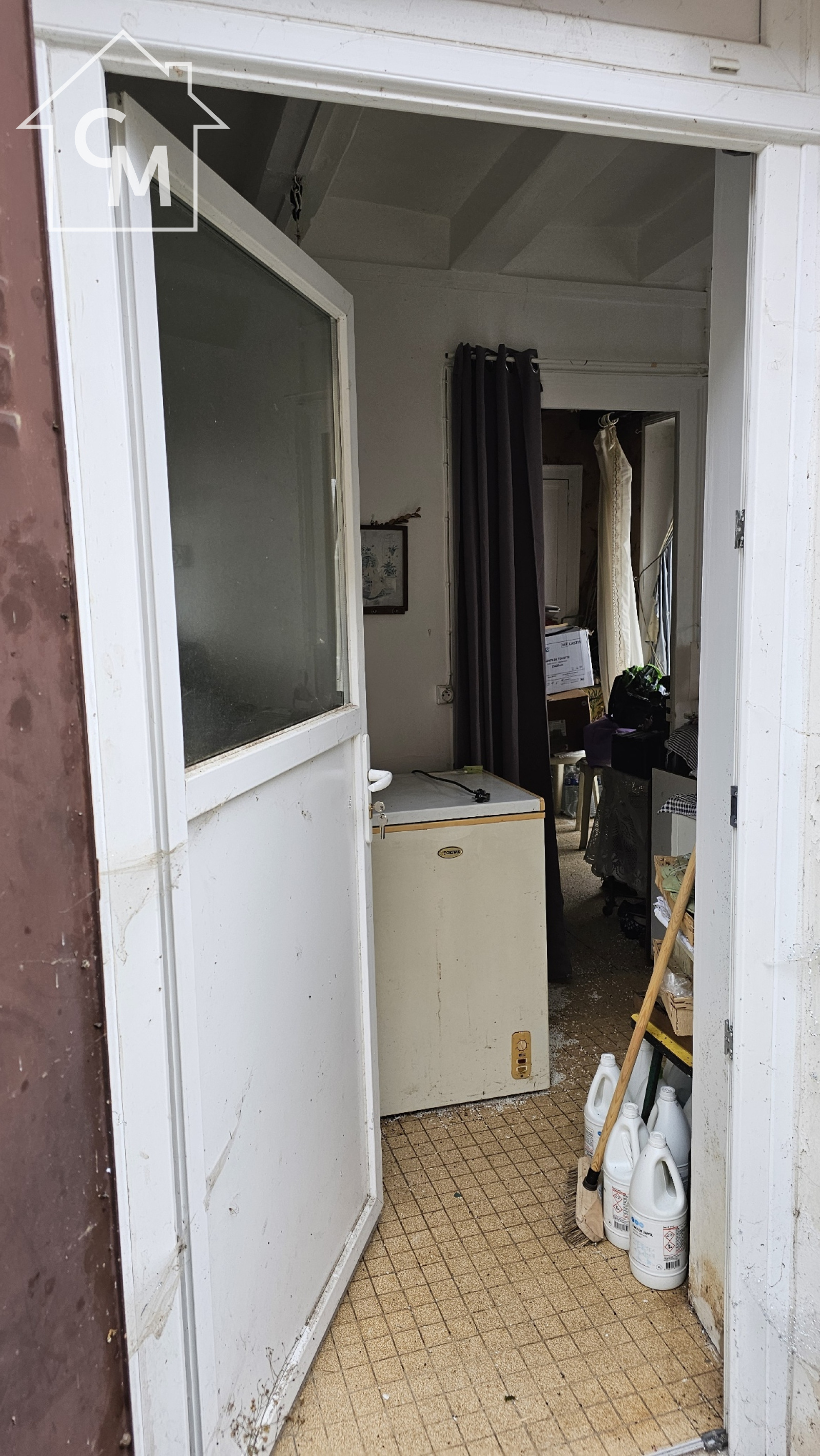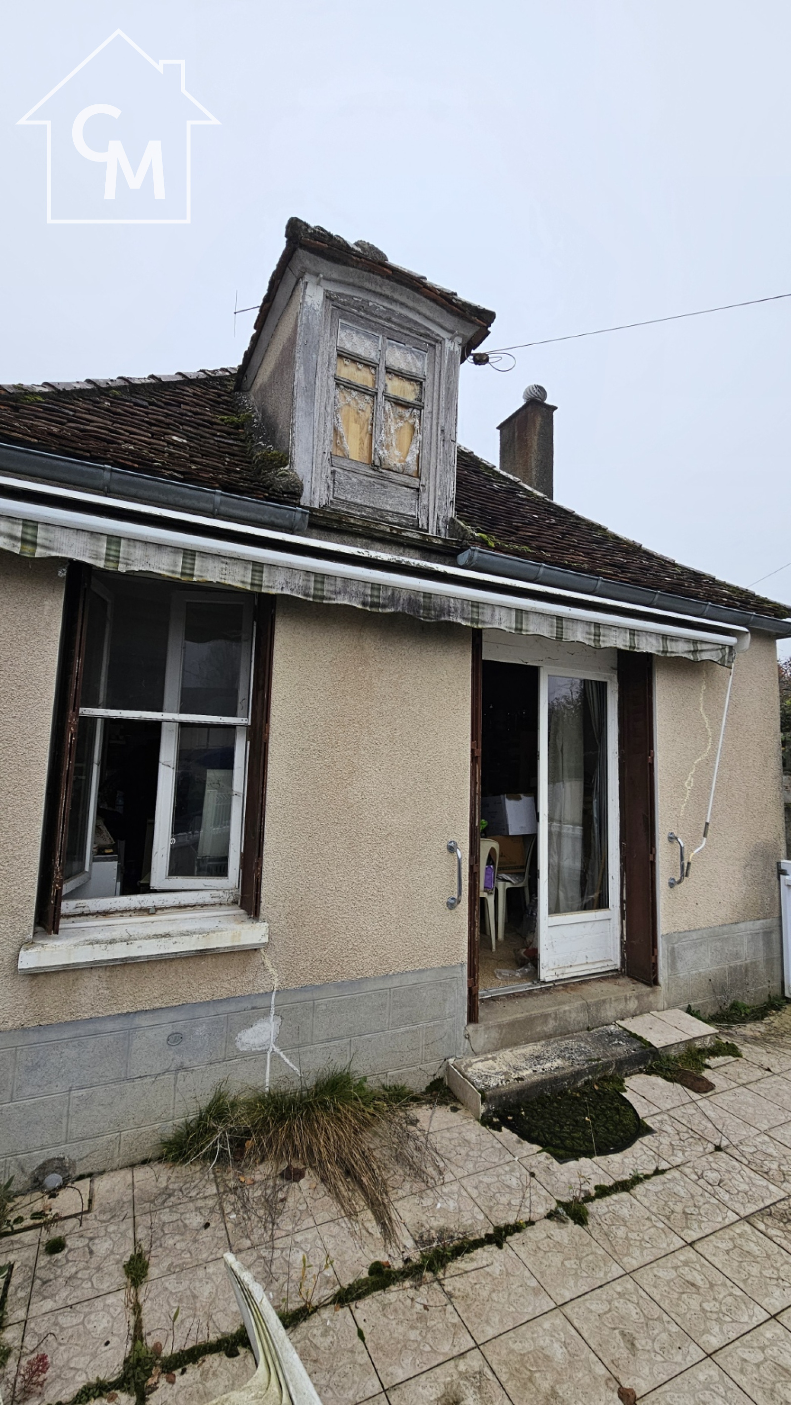 Maison d'habitation élevée sur terre plein, avec rez de chaussée comprenant une salle à manger, une cuisine, une chambre et une salle d'eau avec WC. Cellier à la suite, grenier au dessus, terrasse devant la maison.