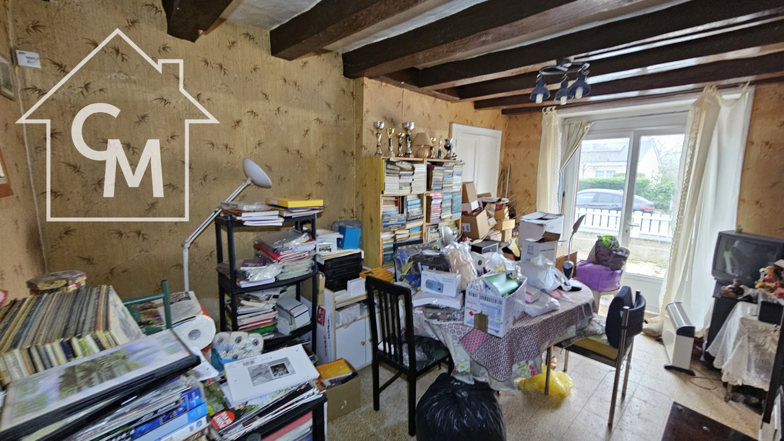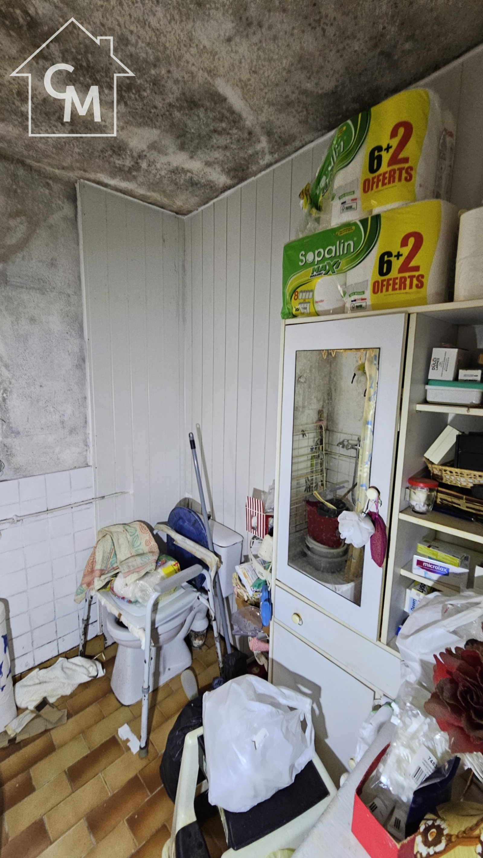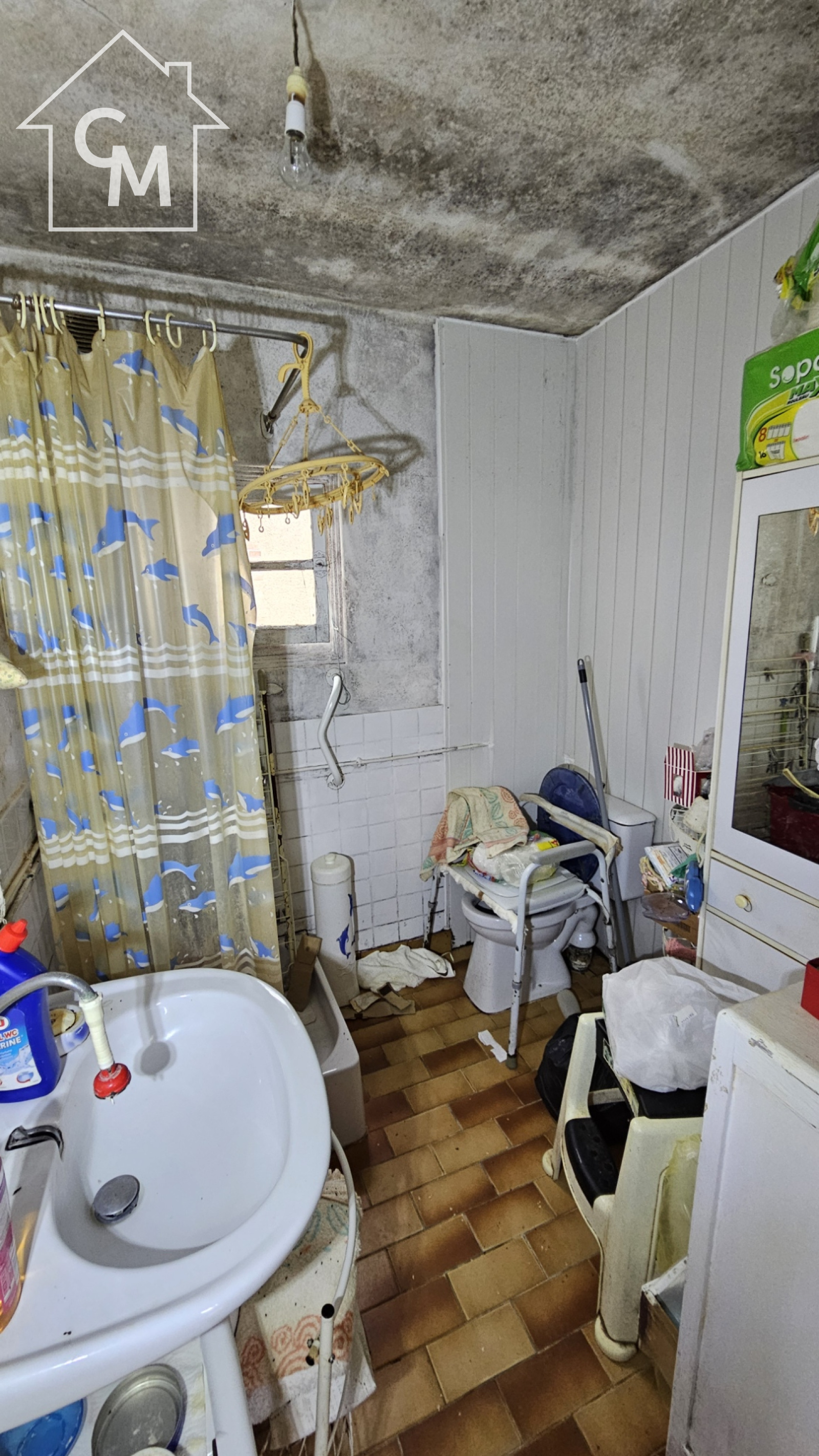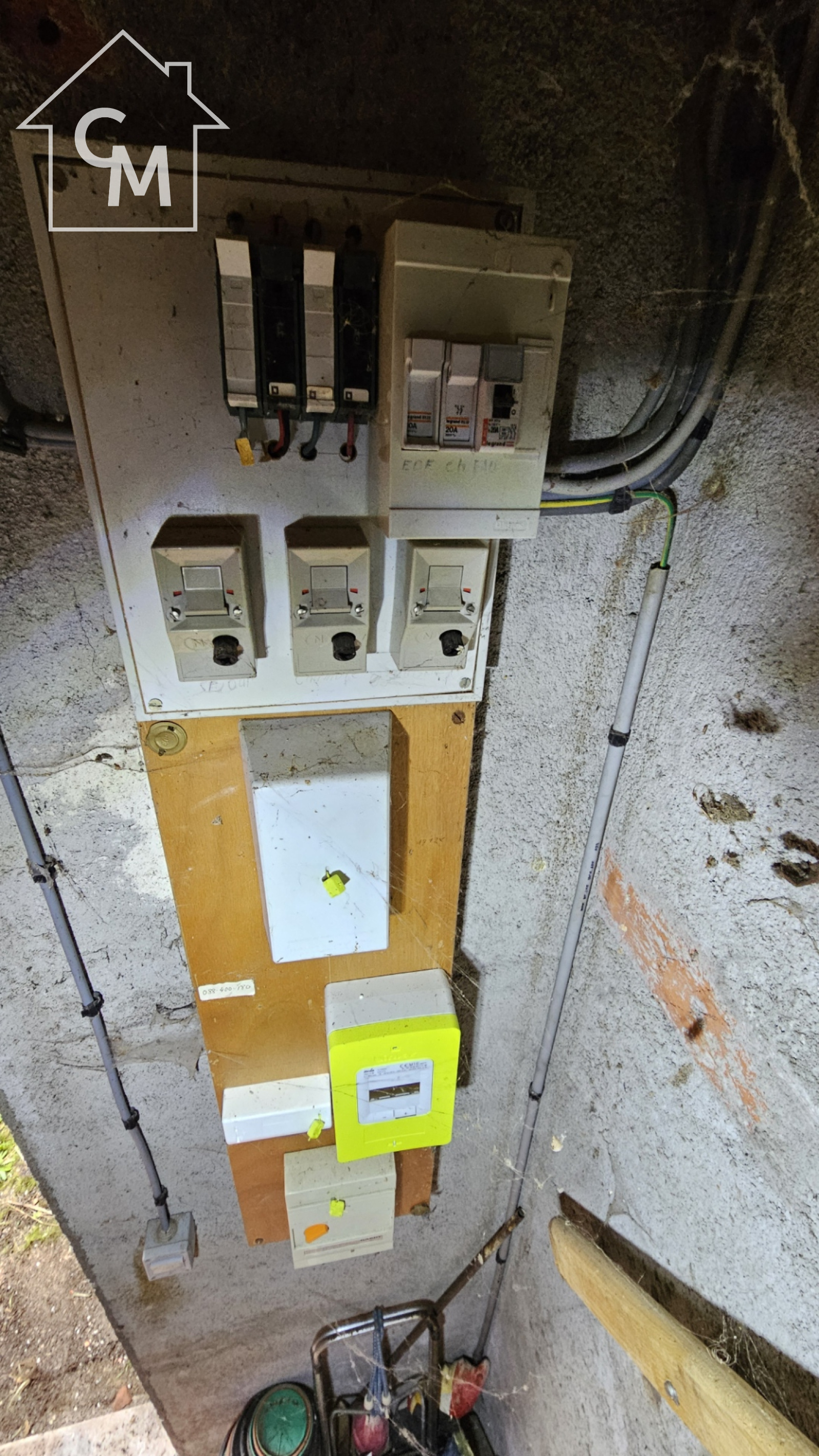 Maison d'habitation élevée sur terre plein, avec rez de chaussée comprenant une salle à manger, une cuisine, une chambre et une salle d'eau avec WC. Cellier à la suite, grenier au dessus, terrasse devant la maison.