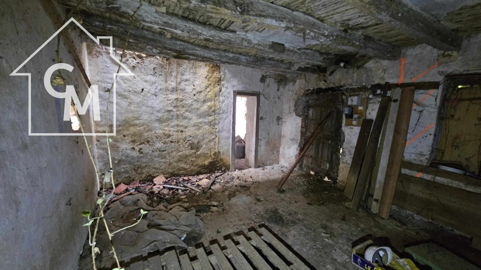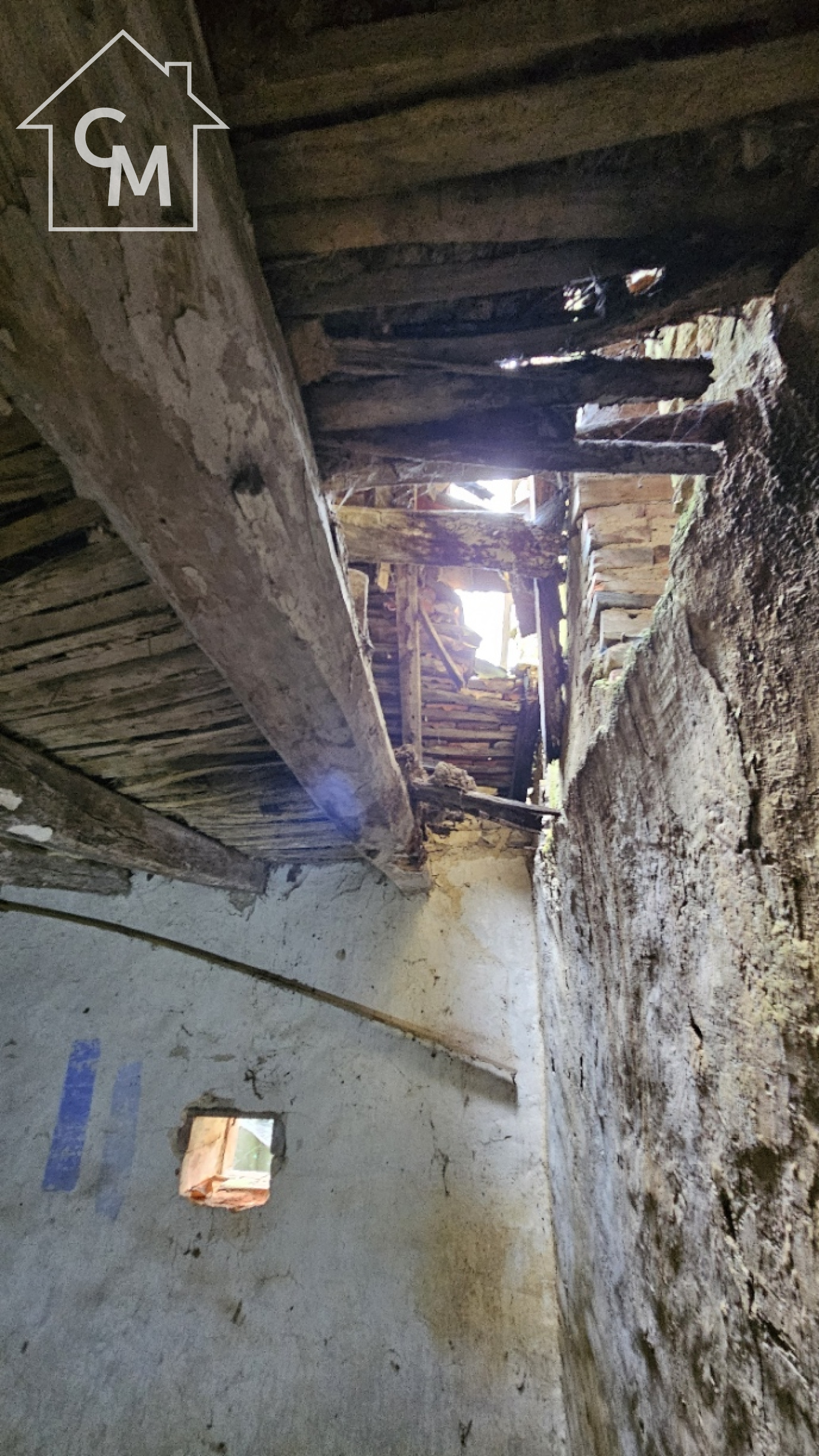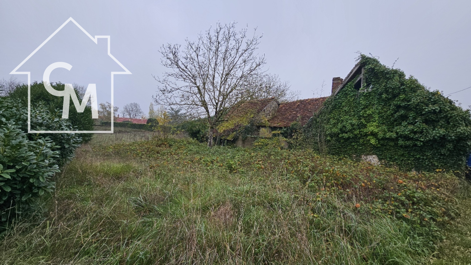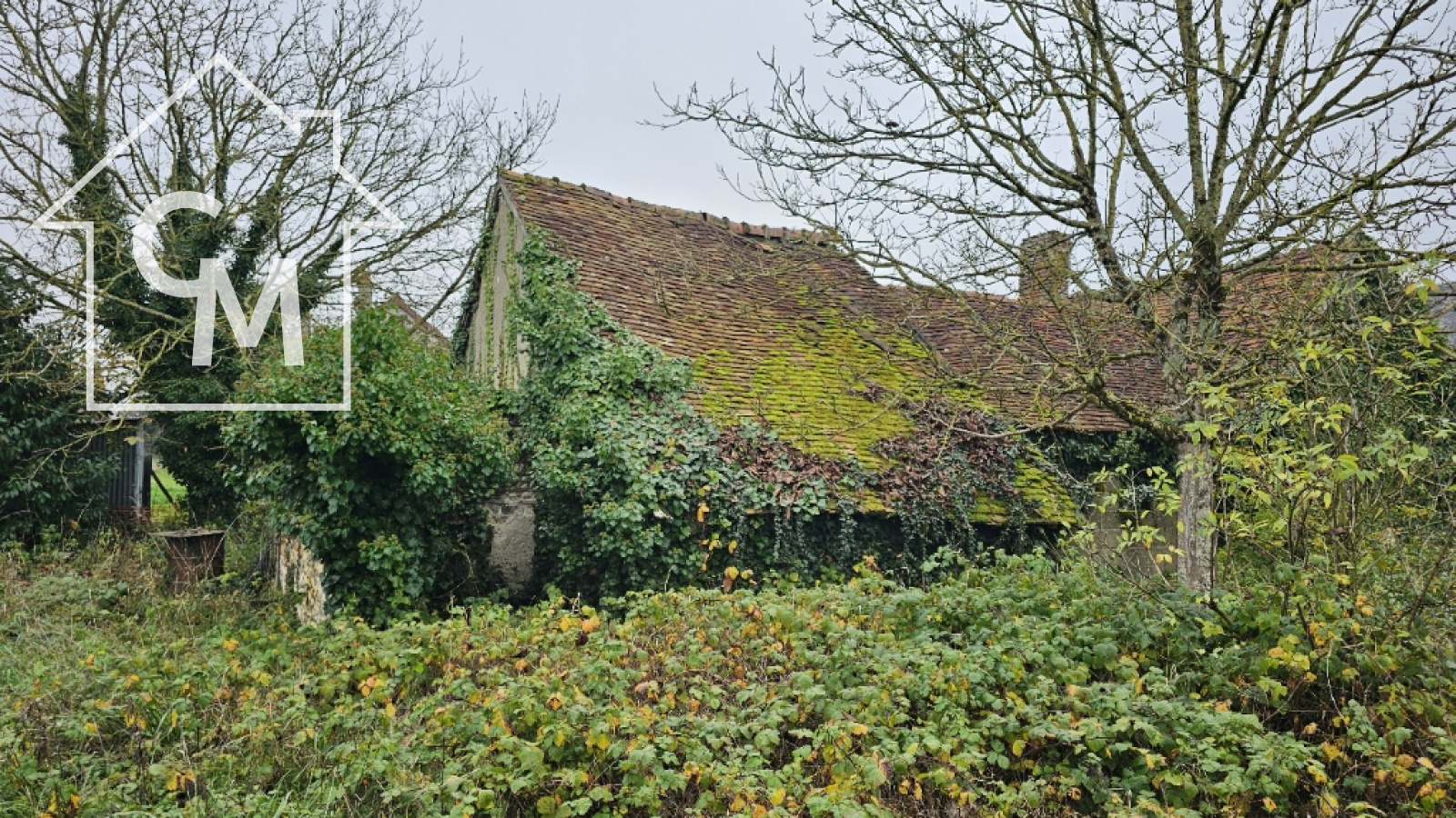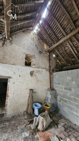 Fermette à rénover entièrement d'environ 35m2, garage atelier attenant, le tout sur un terrain de 1326m2. Toiture effondrée à plusieurs endroit de la maison.