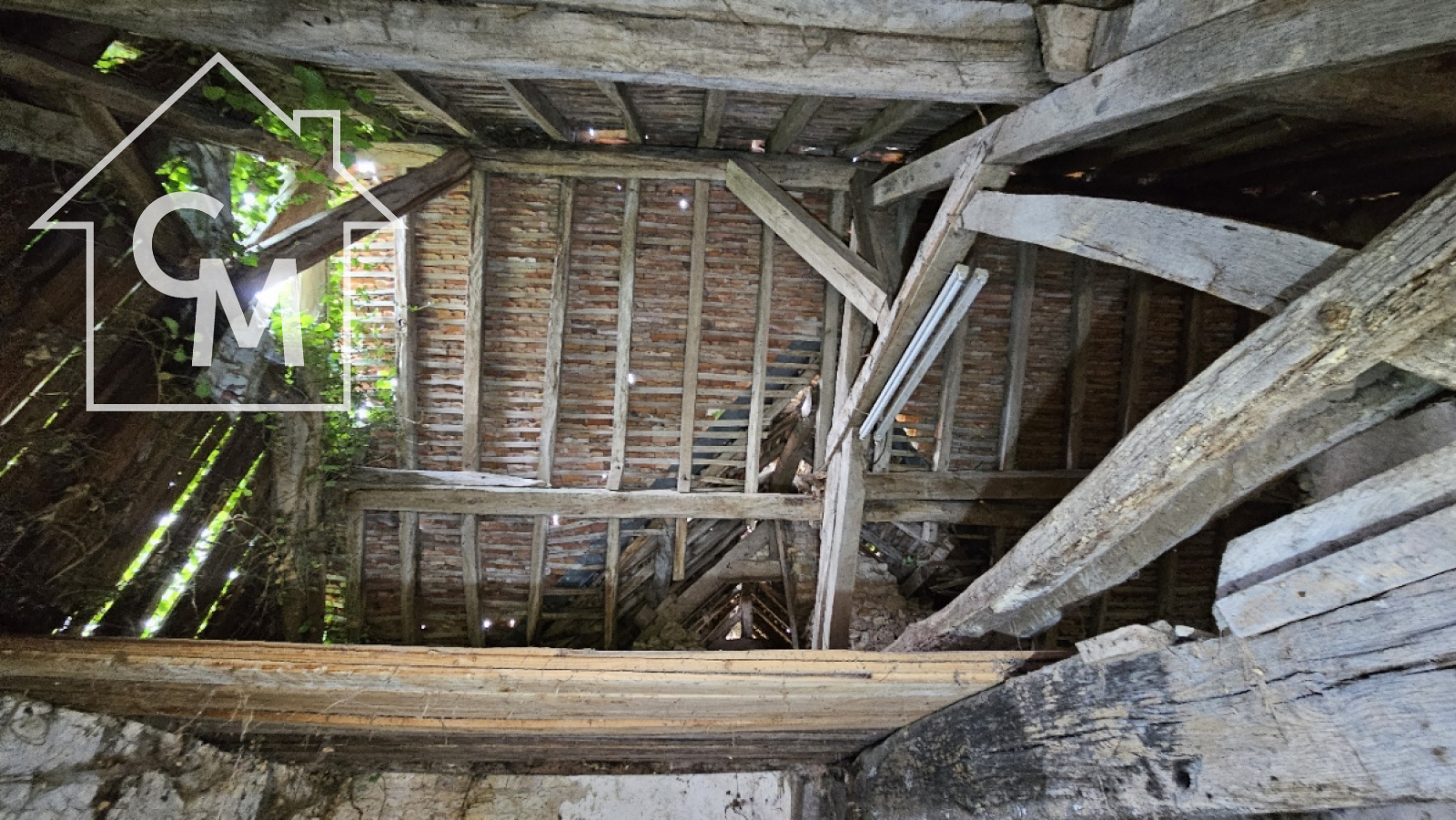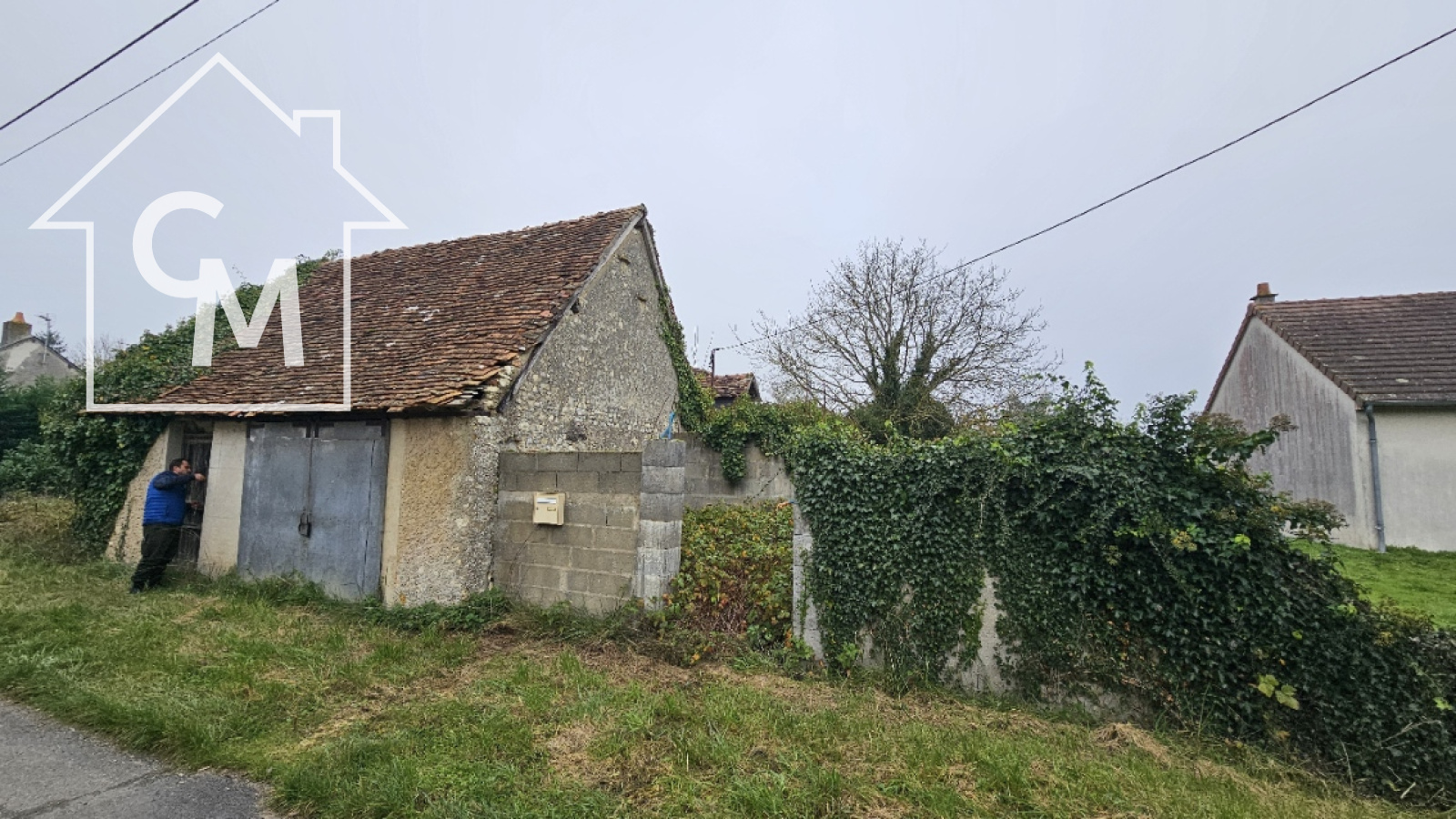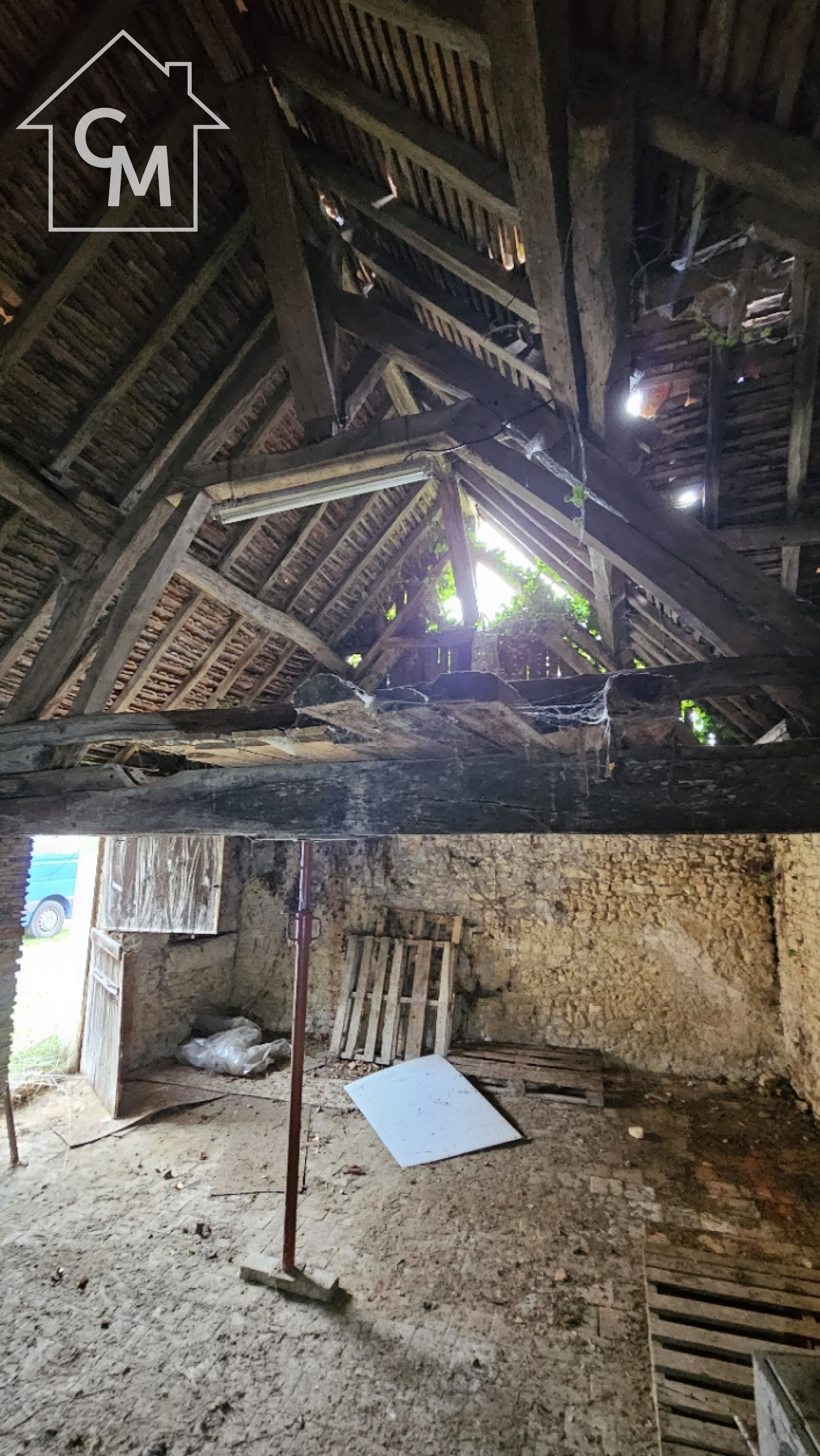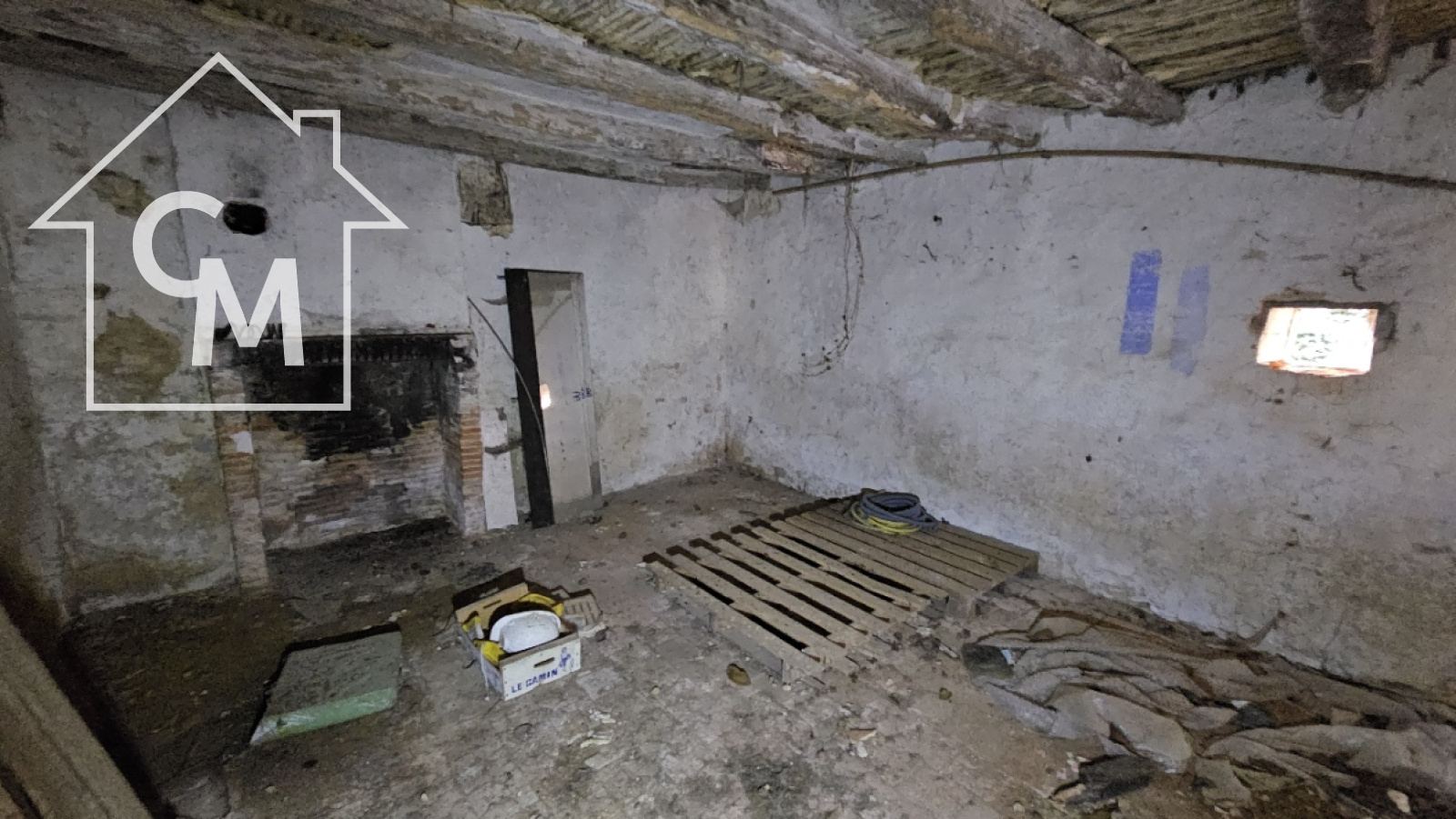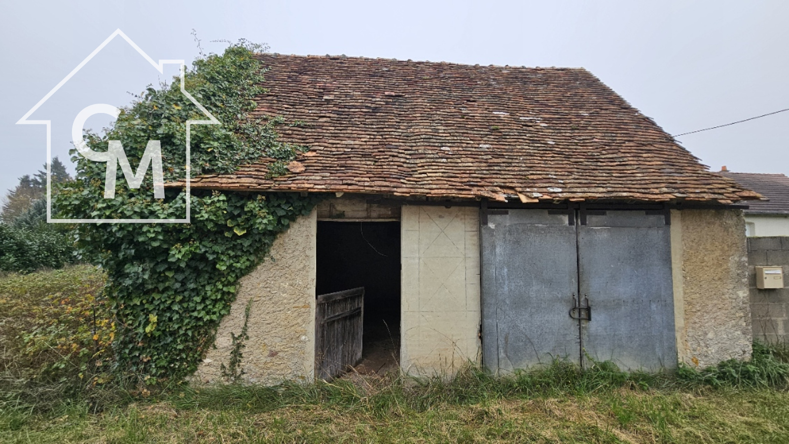 Fermette à rénover entièrement d'environ 35m2, garage atelier attenant, le tout sur un terrain de 1326m2. Toiture effondrée à plusieurs endroit de la maison.