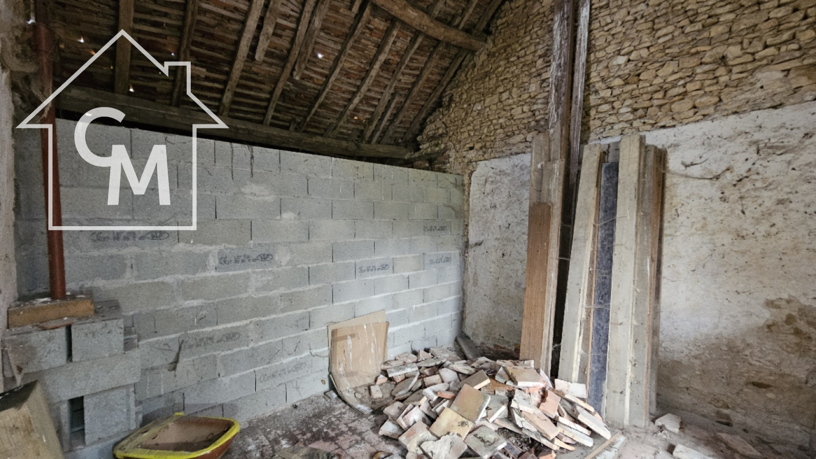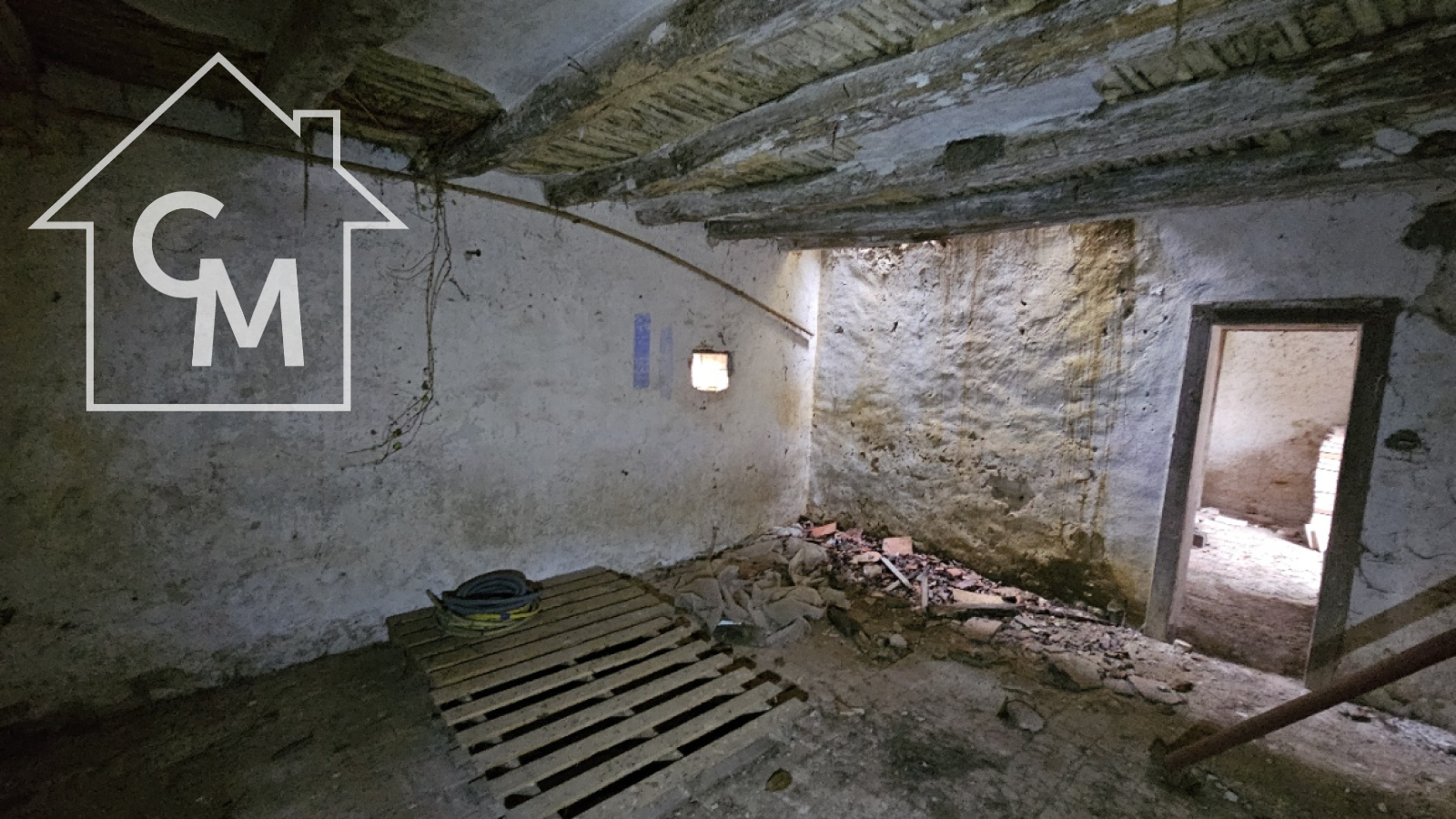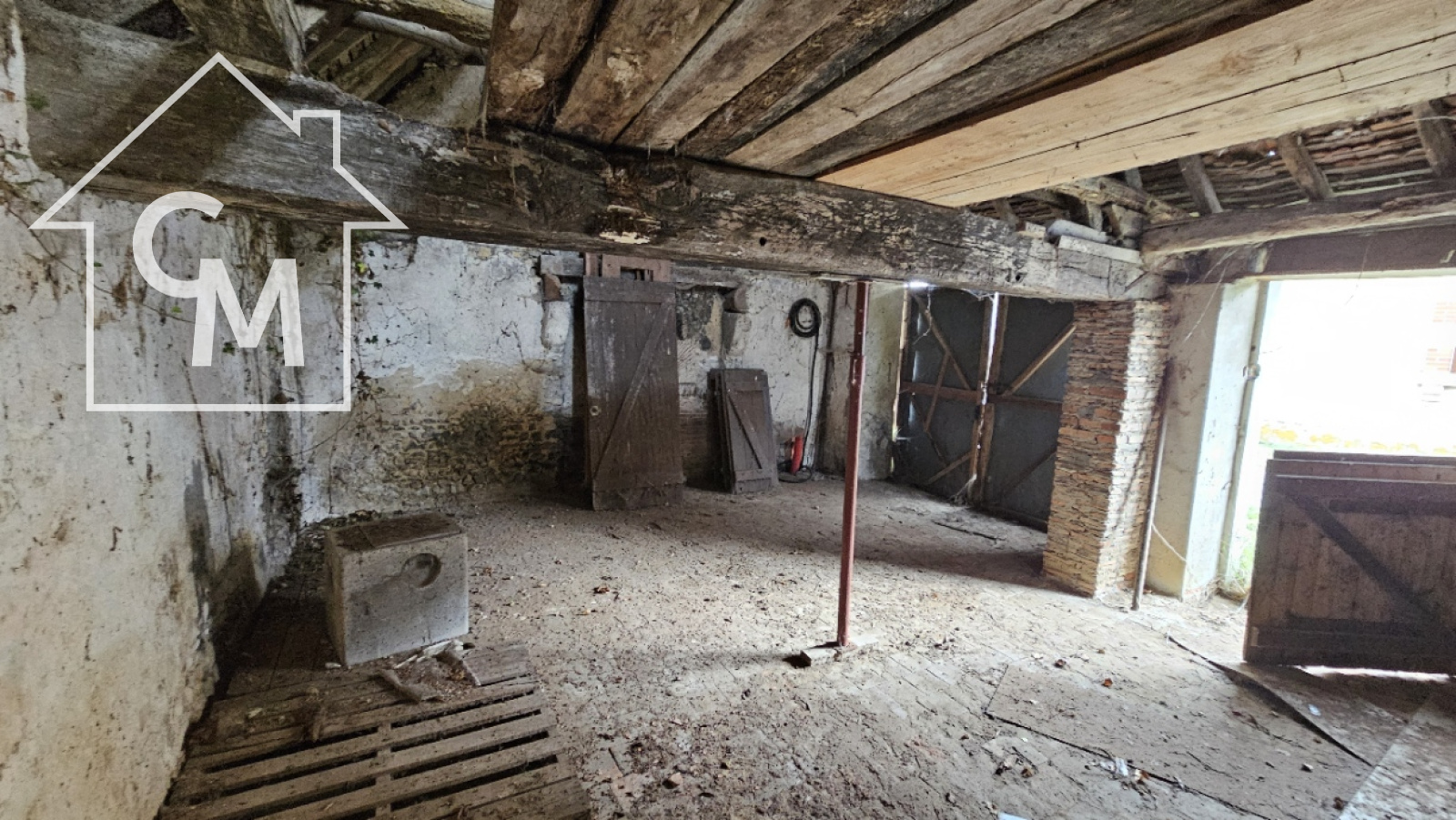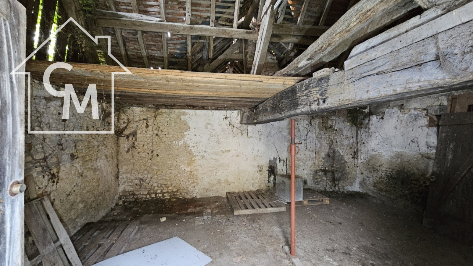 Fermette à rénover entièrement d'environ 35m2, garage atelier attenant, le tout sur un terrain de 1326m2. Toiture effondrée à plusieurs endroit de la maison.