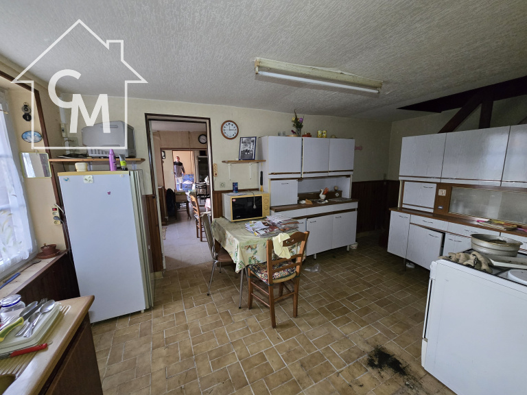 Maison d'habitation composée au rez de chaussée d'une entrée sur cuisine, salon-salle à manger, une chambre, wc, buanderie, cellier.