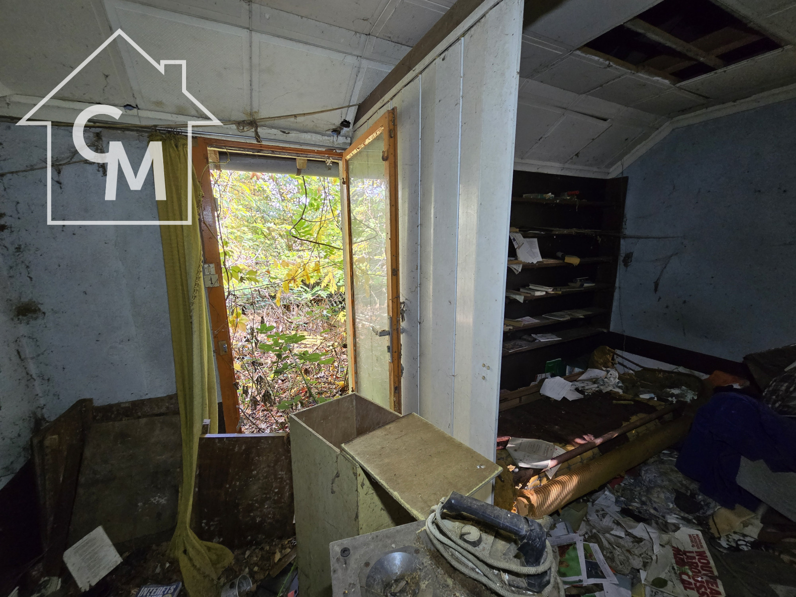 Maison d'habitation composée de deux chambres, salle d'eau, wc, grenier. Garage en préfabriqué, jardin grand terrain.