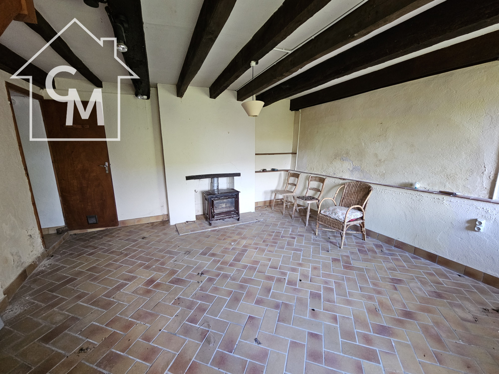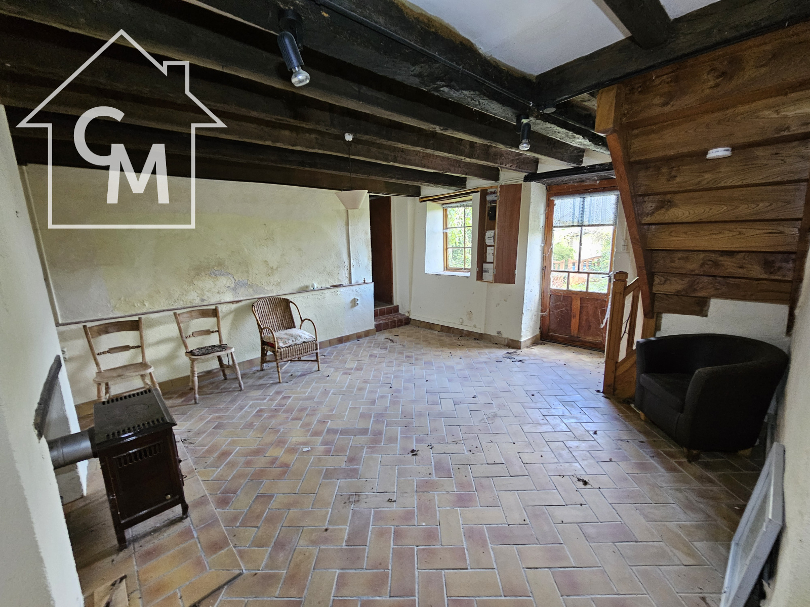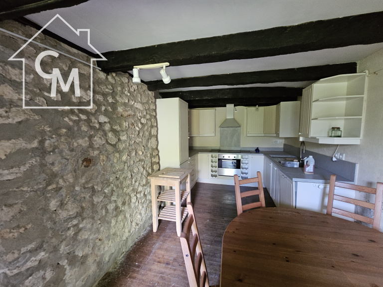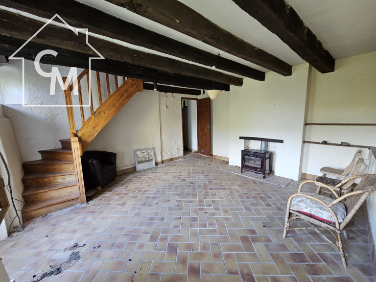 La maison est composée: au rez de chaussée, séjour avec poelle bois, cuisine aménagée équipée, salle de bain wc.