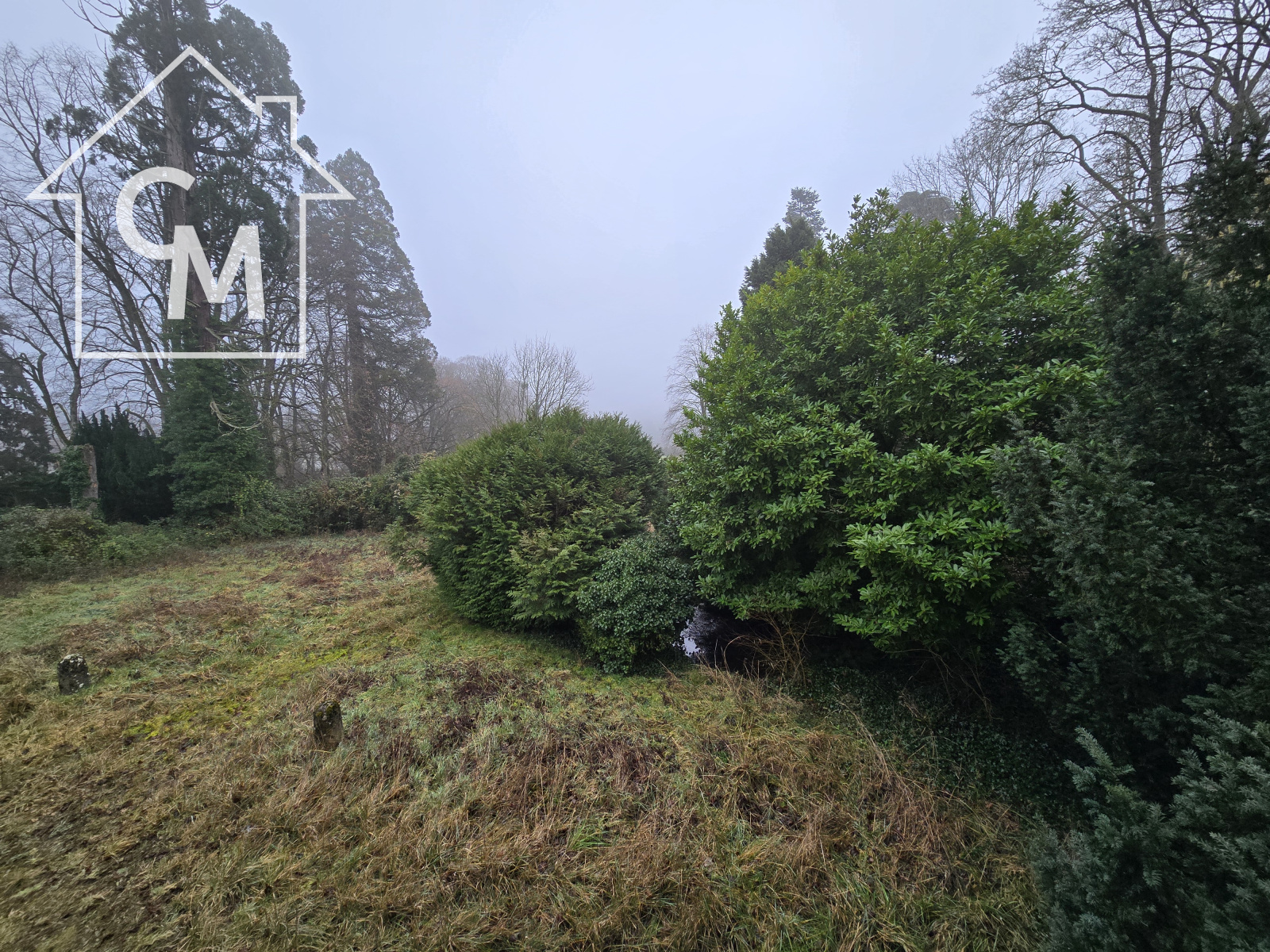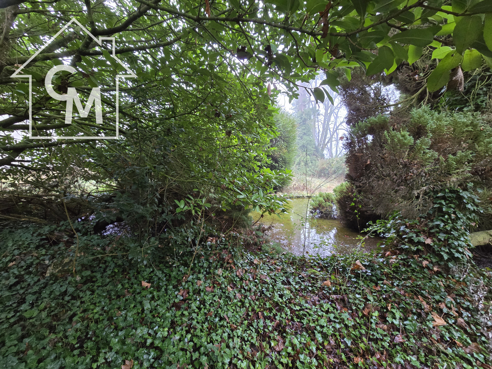 Parc arboré à l’avant avec prairie et bois