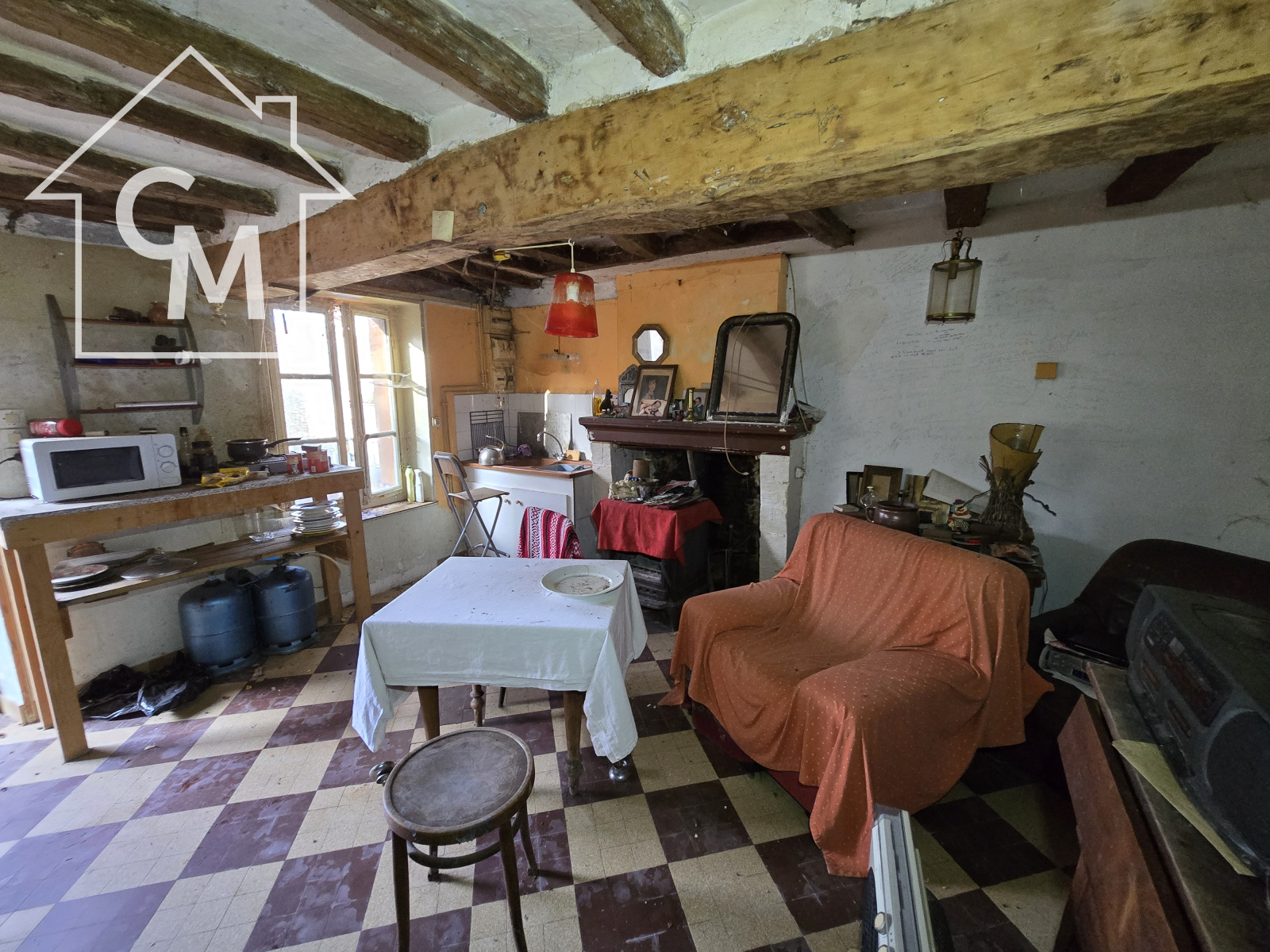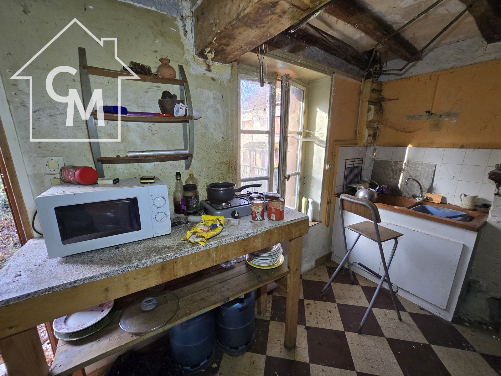 Maison d'habitation à rénover composée d'une cuisine, un séjour, une chambre, salle d'eau avec wc, grenier.