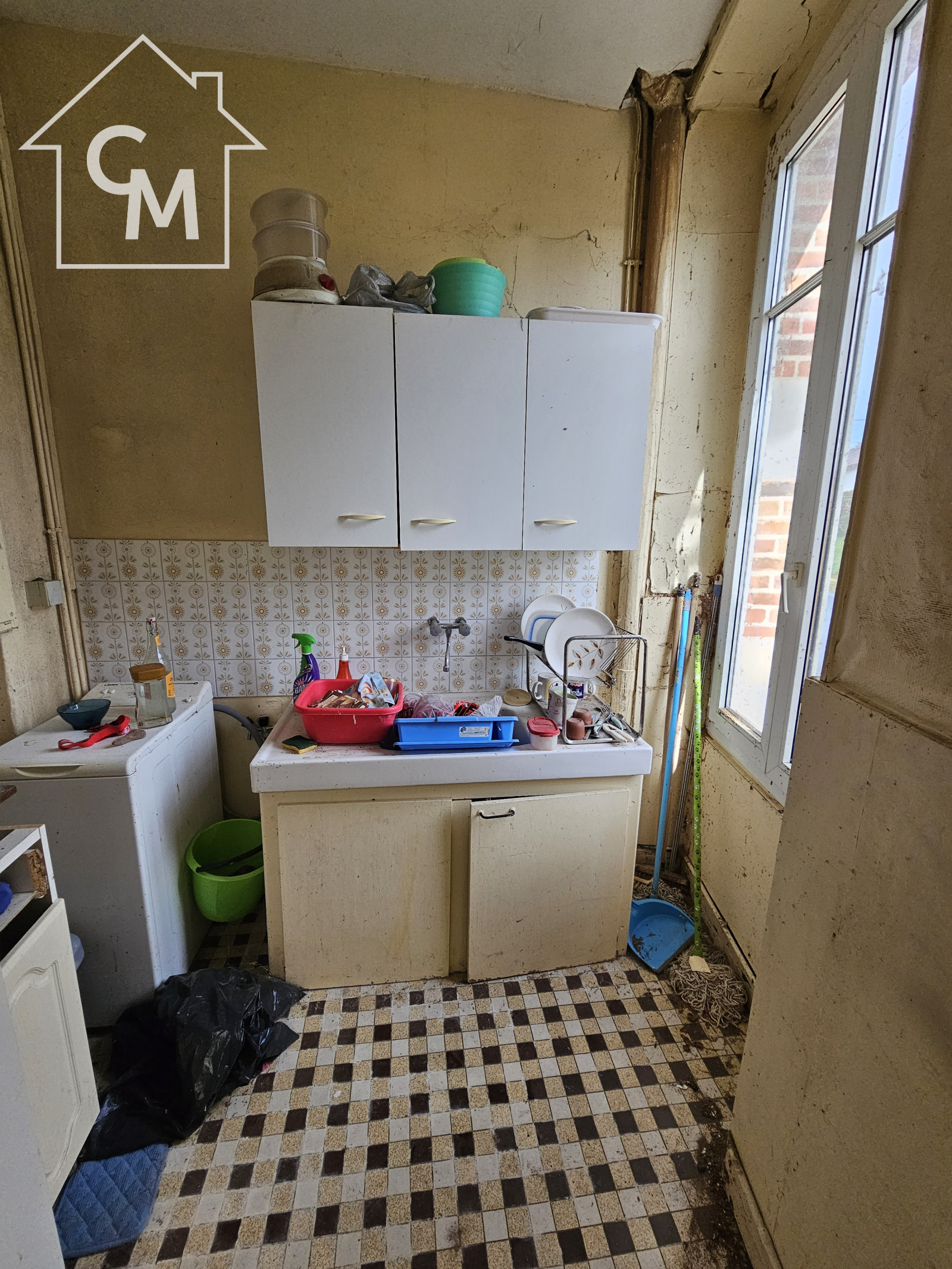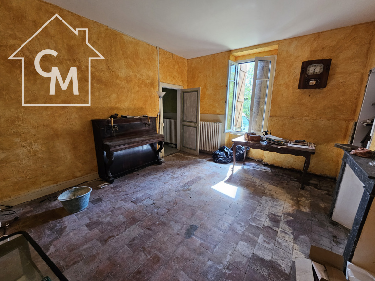 Ensemble immobilier commposé d'une maison à usage d'habitation comprenant : Au rez de chaussée une verrière, une entrée, une cuisine, un salon, une salle à manger, à l'étage une salle d'eau avec wc, deux chambres en enfilade.