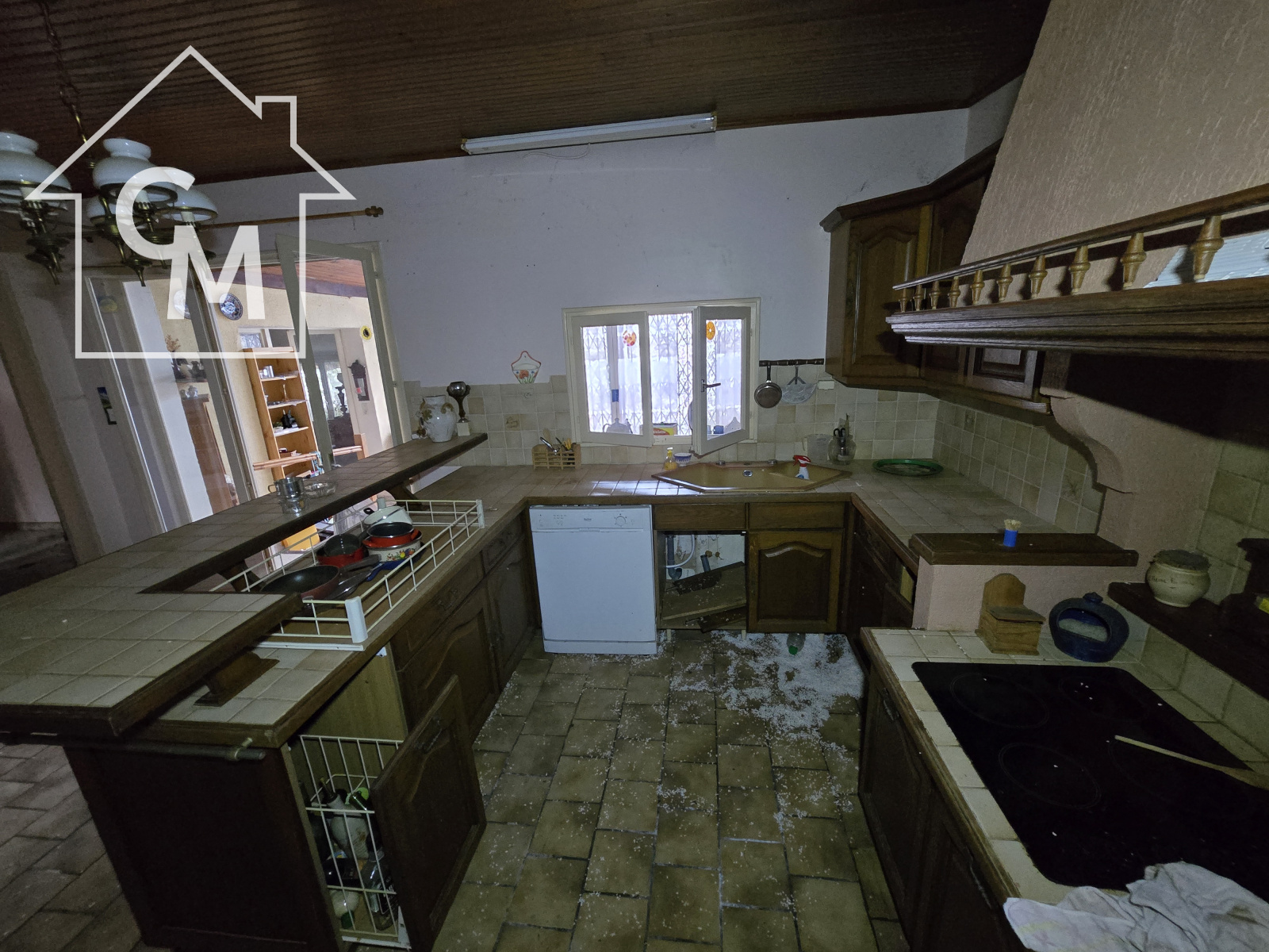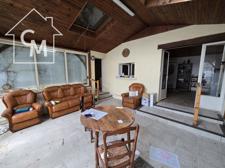 Maison d'habitation composée d'un rez de chaussée élevé sur terre plain comprenant grande véranda, cuisine, séjour avec cheminée et insert, arrière cuisine, trois chambres, wc et rangements, salle de bain, une chambre avec salle d'eau et wc, une chambre avec wc.