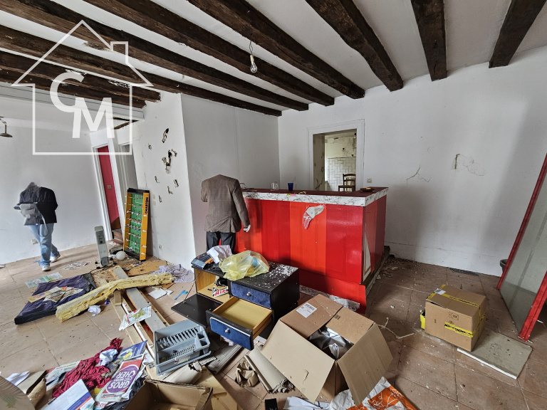 Maison composée au rez de chaussée d'un salon, une cuisine, débarras, couloir, salle d'eau, accès à une courette.
