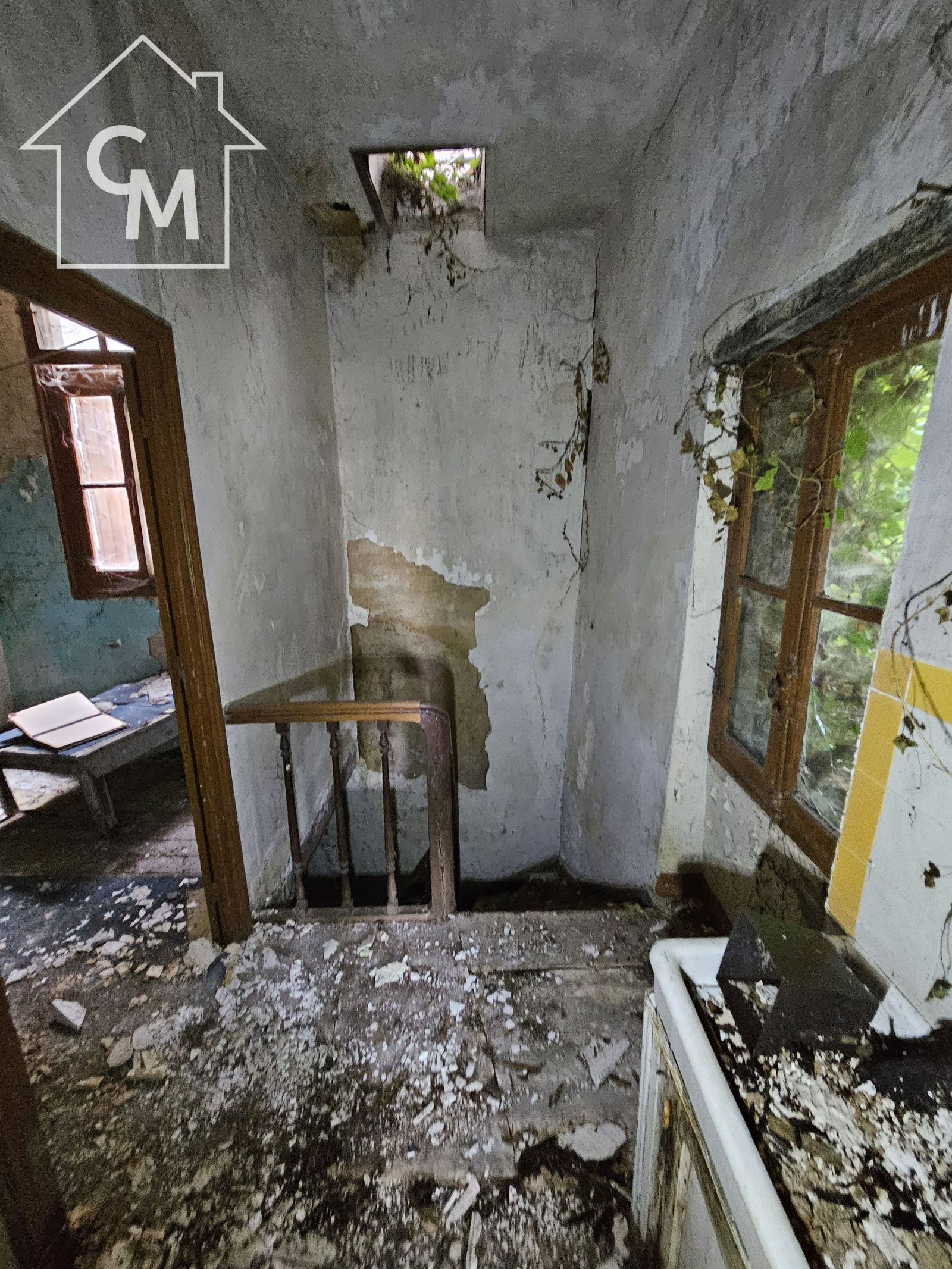 Maison d'habitation sur deux niveaux composée au rez de chaussée d'une salle à manger, un couloir donnant sur une cuisine, un salle d'eau avec douche et wc, couloir, cellier et jardin. Au premier étage 3 chambres, grenier au dessus. Terrain sur coteau auquel on accède par un escalier.